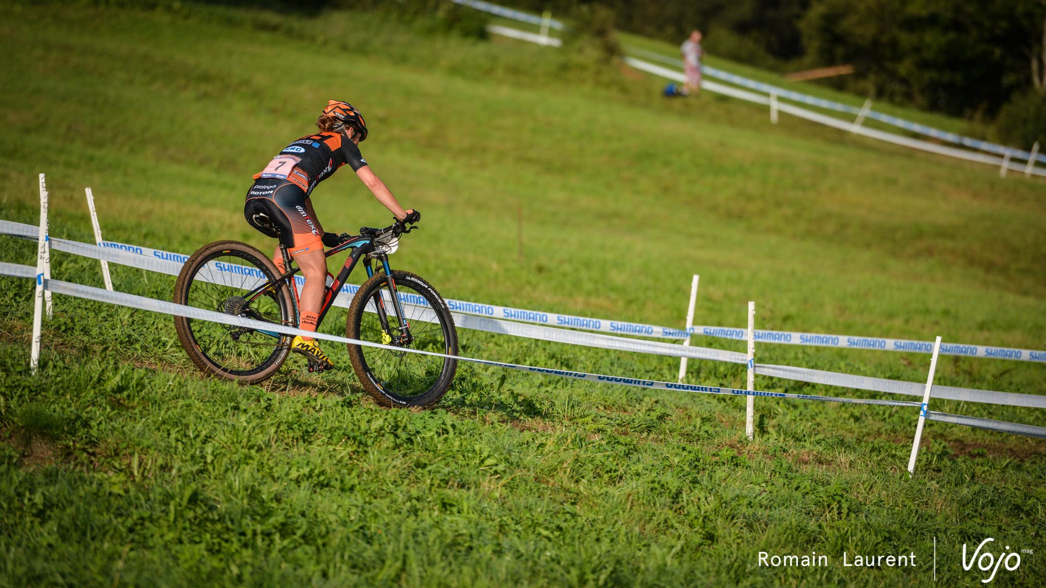 Plaque n°13 à l’envers pour le transformer en « numéro de la chance », il nous explique : « J’ai un peu raté la pédale au départ donc ça a été compliqué au début. Mais je savais bien qu’il ne fallait pas s’affoler sur ce circuit très physique. J’étais dans les 15 au début puis j’ai commencé à remonter. J’étais avec le champion d’Europe et on avait le groupe d’Antoine en point de mire. Bertolini a fait le travail et je suis parti avec lui. Ensuite, dans le dernier tour, on était encore un gros groupe. L’Italien en avait encore sous la pédale, il en a remis une couche. J’ai un peu coincé mais j’ai essayé de m’économiser pour la dernière montée où j’ai réussi à faire la différence pour aborder la dernière descente en tête. Et ça a payé ! Après les championnats de France j’étais un peu moins bien mais là je sens que ça revient, ça s’annonce bien pour Cairns » !