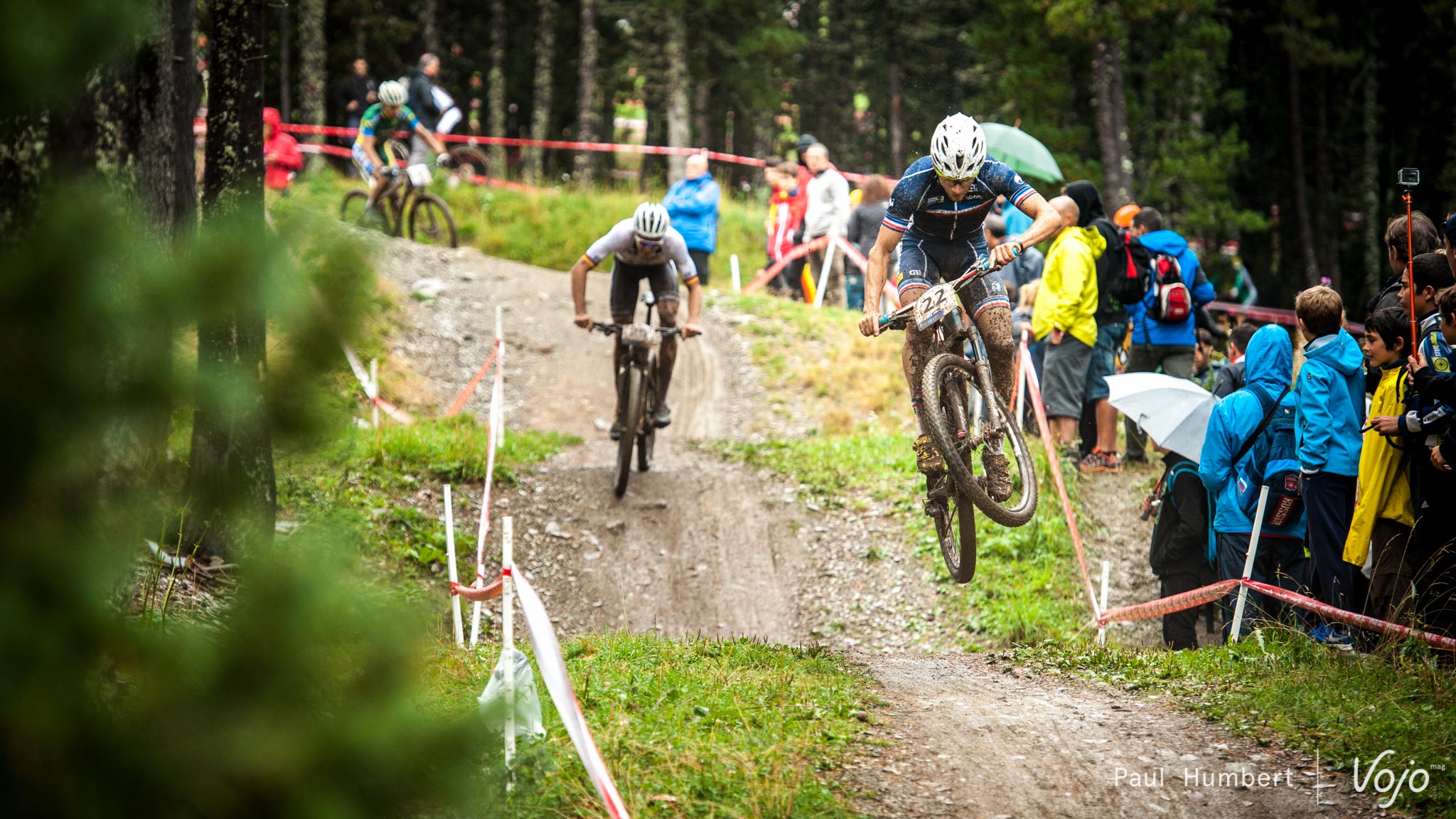 Entre deux averses, le top départ est donné. Le circuit est détrempé et la température ne cesse de chuter. À Val di Sole, Titouan Carrod a décroché le général de la coupe du Monde devant Pablo Rodriguez. Nous nous attendions donc à retrouver ces deux protagonistes aux avant postes.