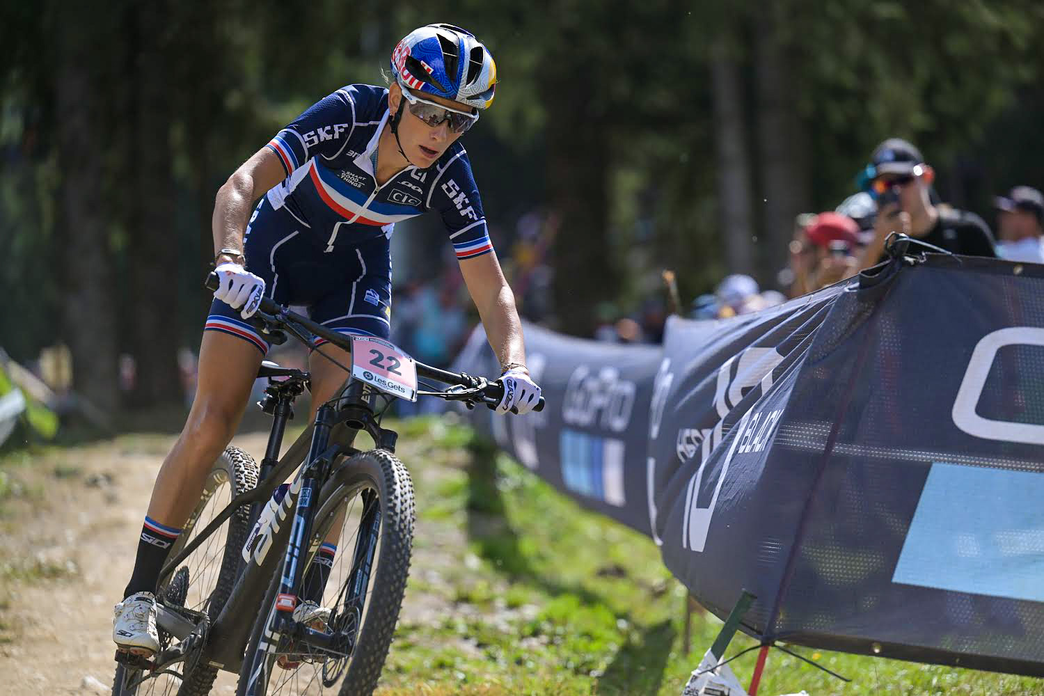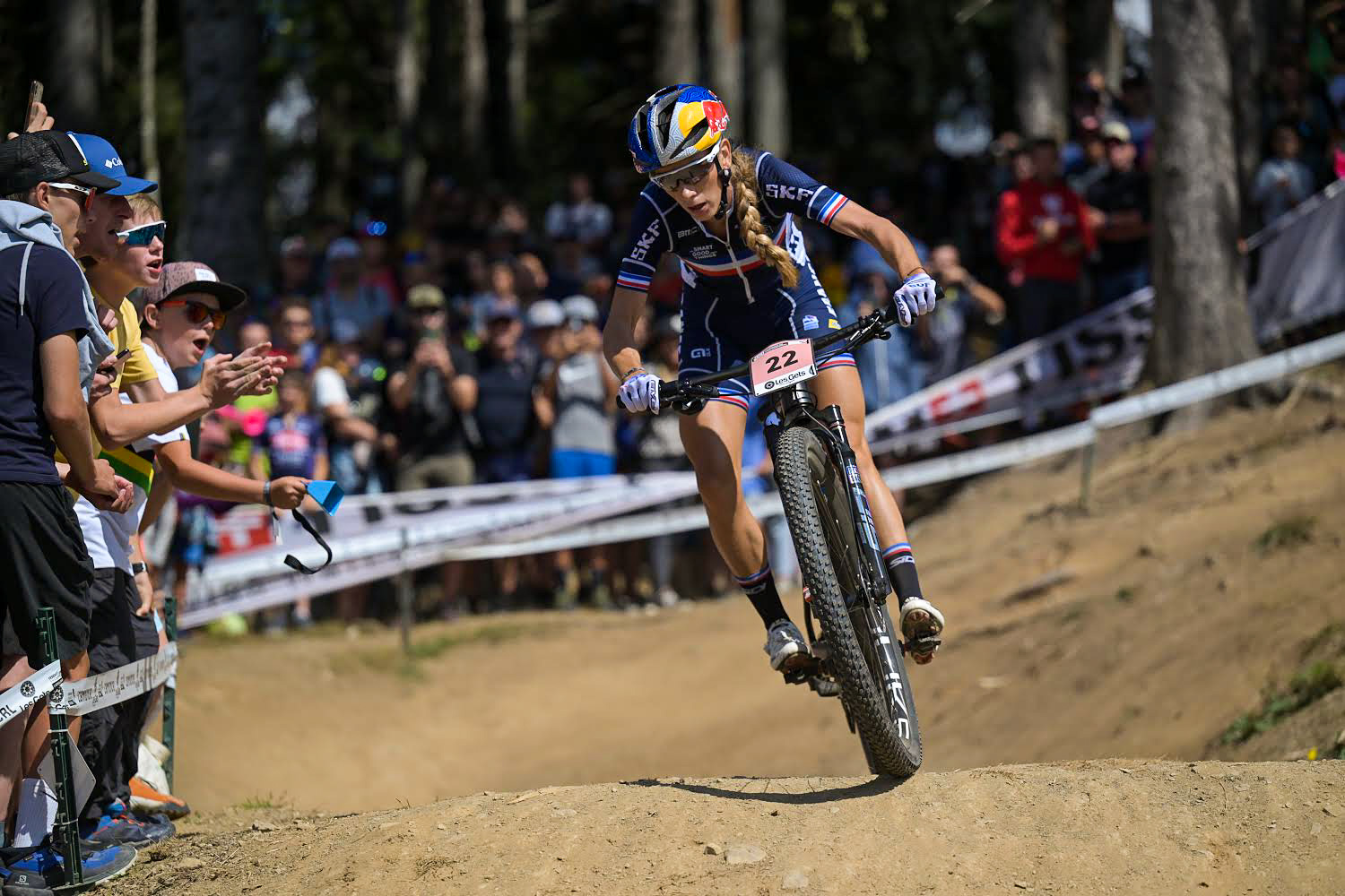 Après sa victoire en XCC vendredi la triple championne du monde de cross-country XCO va devoir faire un peu de place dans sa garde-robe dédiée aux maillots arc-en-ciel ! Il s’agit là de son 11ème titre de championne du monde, toute pratiques confondues. Elle égale aussi le record de 4 titres mondiaux VTT XCO en catégorie Elites, détenu jusque là par Gunn-Rita Dahle. En voilà un sacré palmarès !