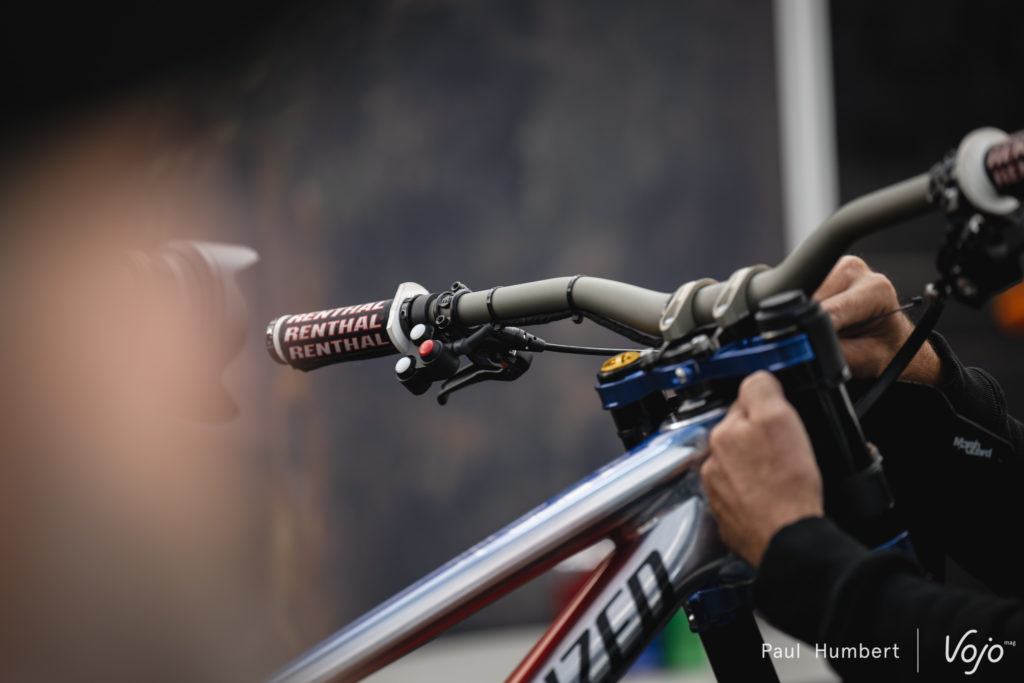 Il est à ce jour impossible d’avoir de plus amples informations, on ne connaît toujours pas le rôle précis des boutons présents sur le cintre. Permettent-ils à Loïc de passer d’un mode à un autre, activent-ils un blocage pour améliorer le pédalage sur les sections les plus plates ? Ont-ils un impact sur la compression et/ou la détente de la fourche et/ou de l’amortisseur ?