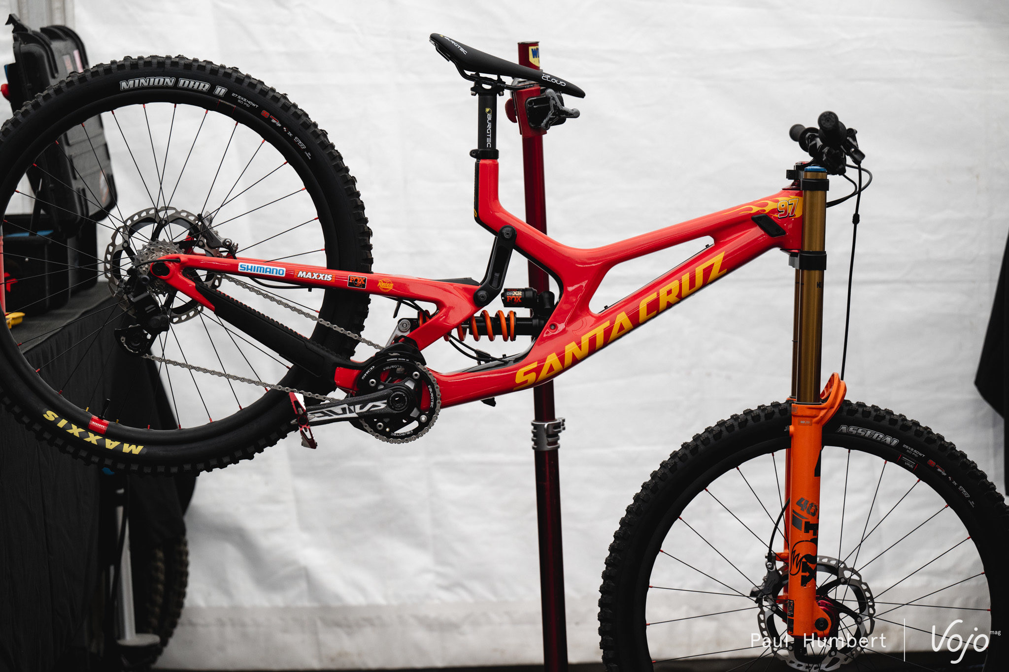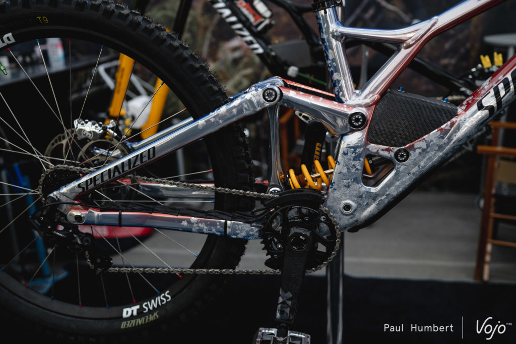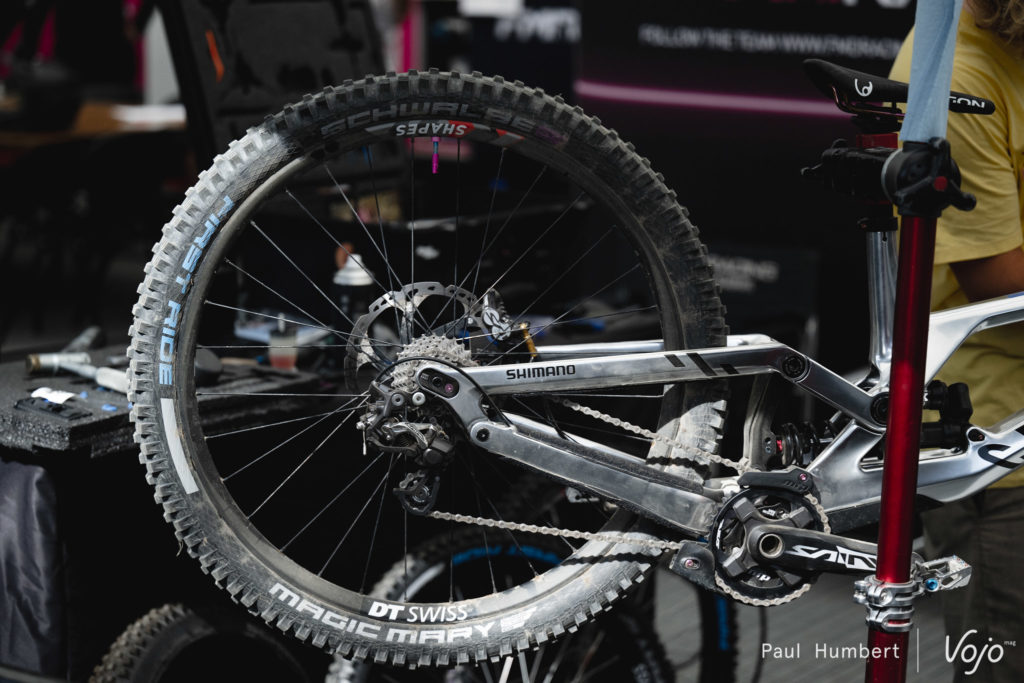 On a aussi vu Aaron Gwin rentrer avec une base coupée en deux, net, mais comme vous pouvez vous en douter, nous n’avons pas été autorisés à photographier le vélo à ce moment.