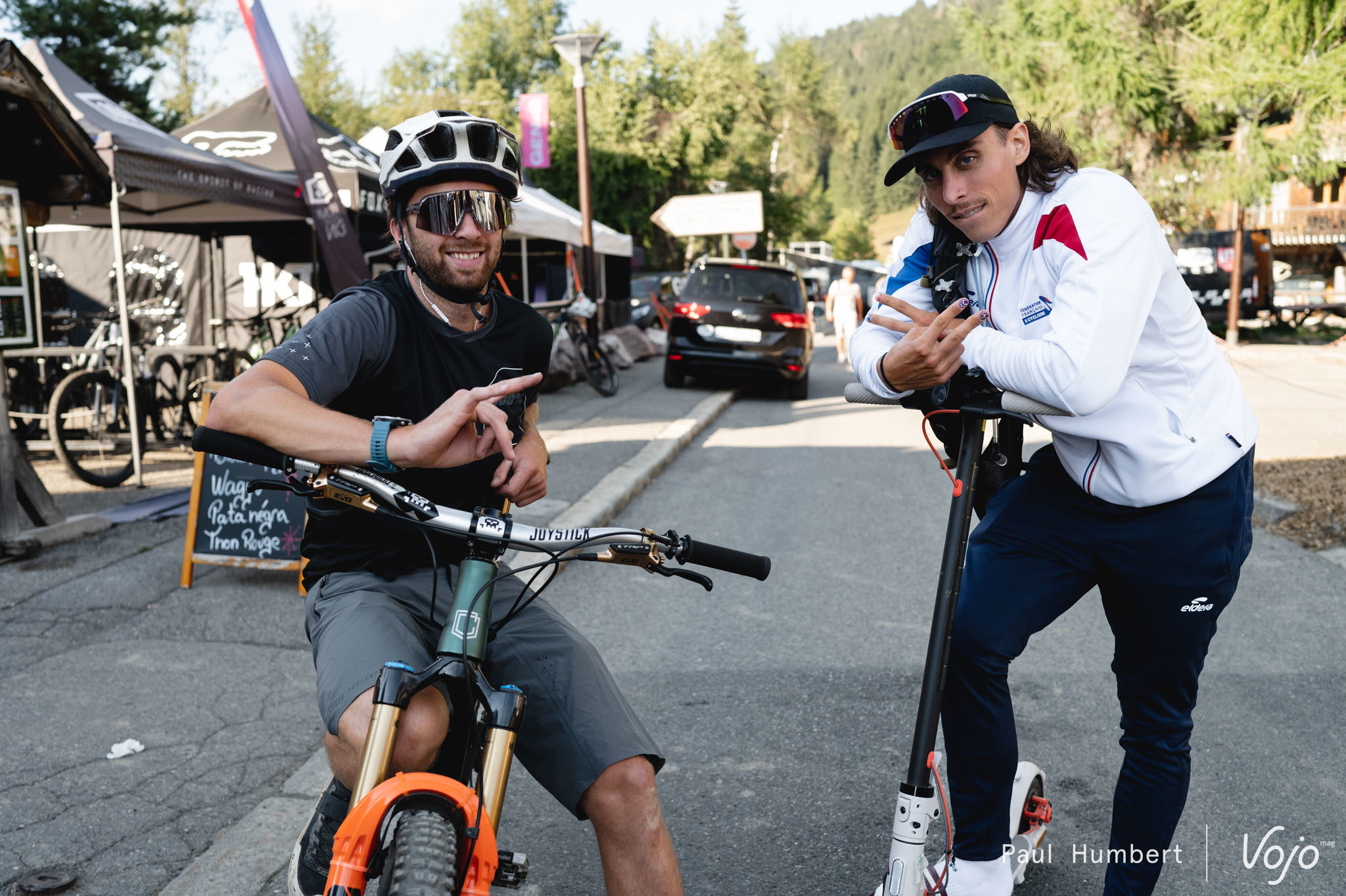 Aux Gets, les paddocks se dispersent dans les différentes rues du village. Une configuration originale qui nous amené à traverser toutes les ruelles en quête d’une tente cachée. Championnats du Monde oblige, en plus des structures des pilotes qualifiés, des tentes des délégations nationales sont là pour accueillir les athlètes.