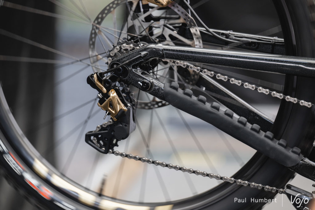 Par ailleurs, on remarque sur ces deux vélos un triangle arrière revisité et un galet de renvoi spécifique.