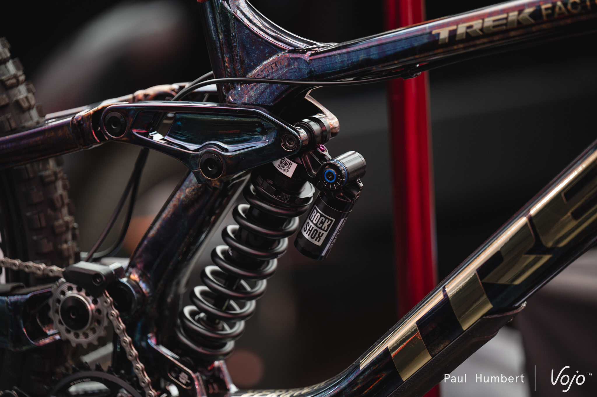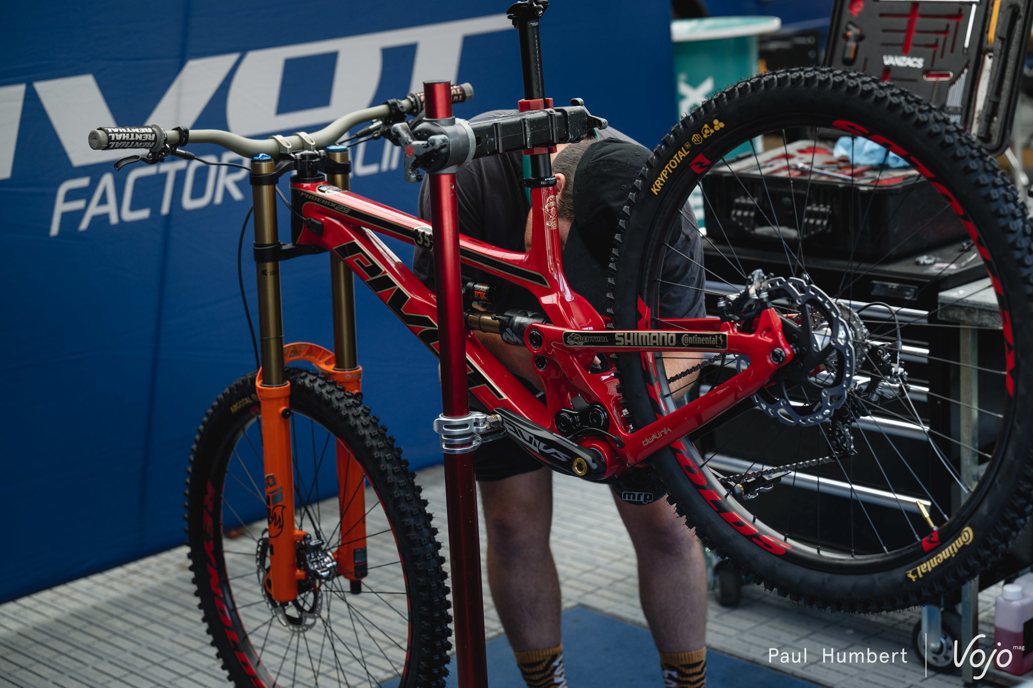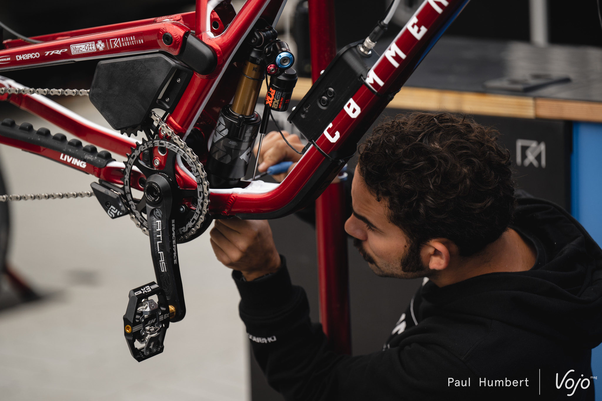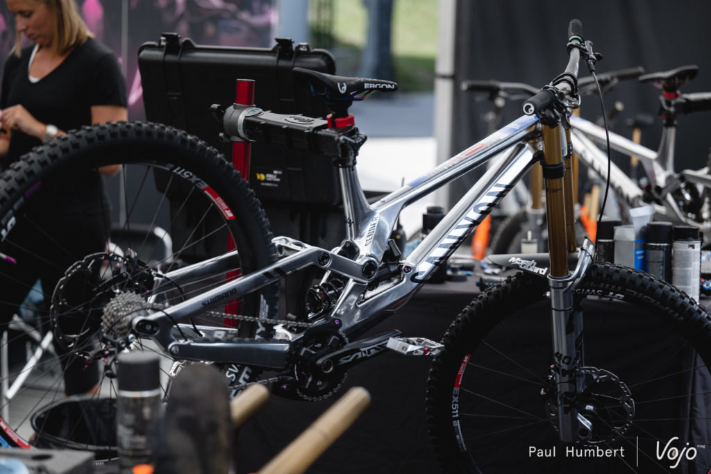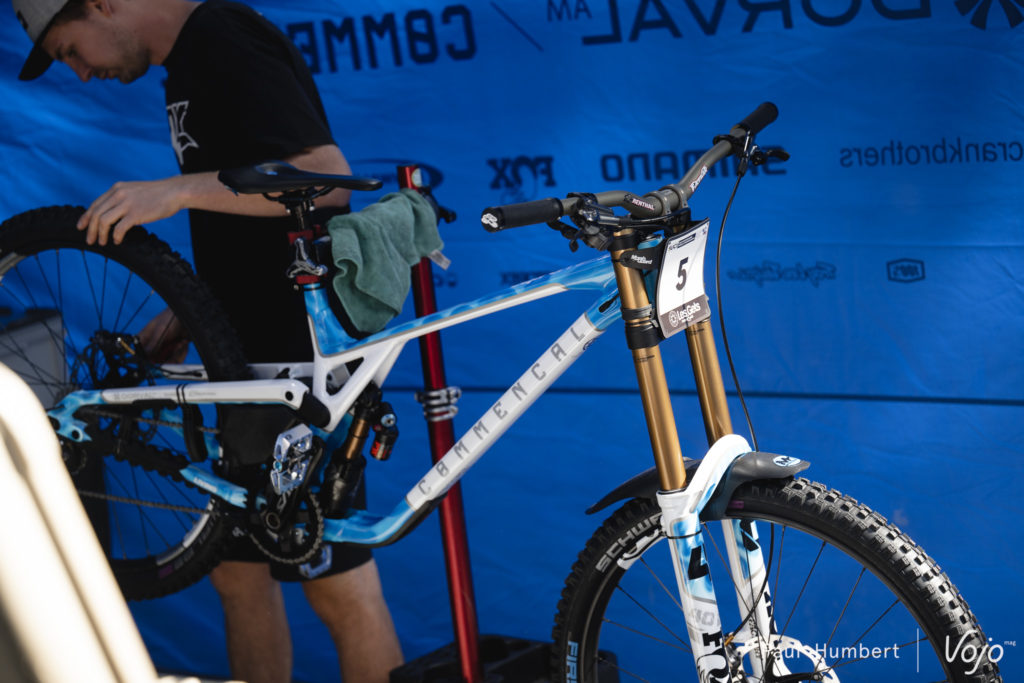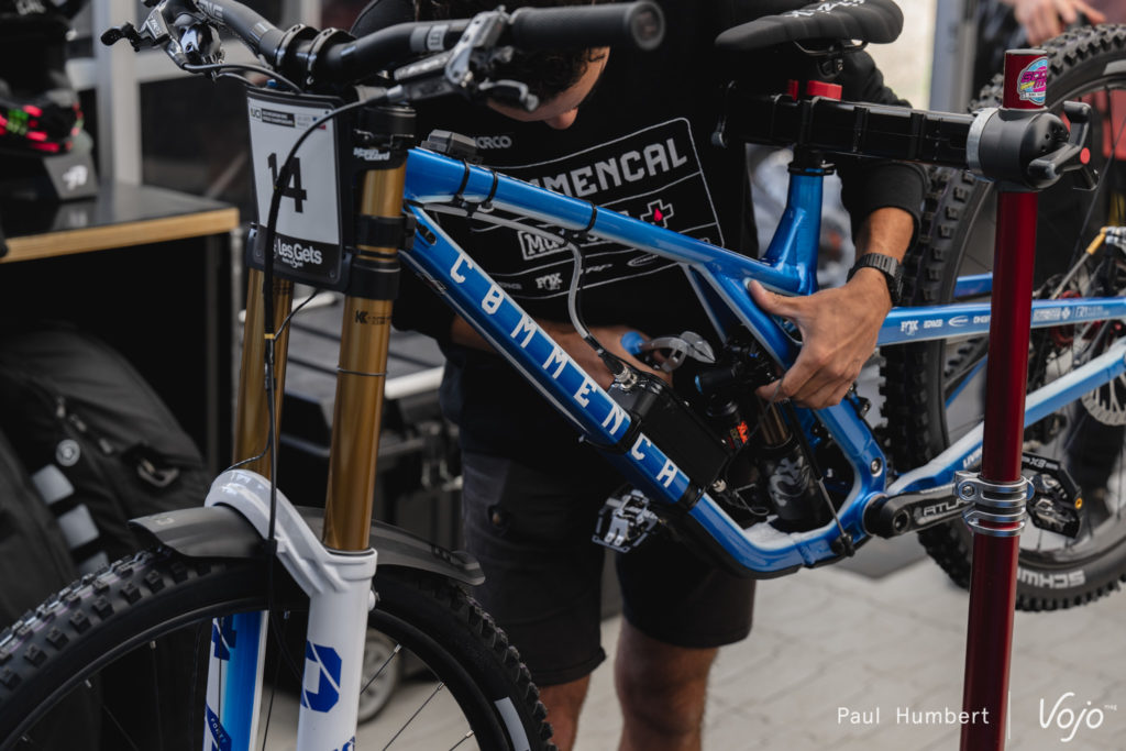Afin de maîtriser au mieux son sujet, l’équipe Commencal Muc-Off se charge elle-même de l’entretien et de l’optimisation de ses suspensions. On notera que les Commencal Supreme V5 font partie des “rares” vélos à utiliser un amortisseur à air dans la majeure partie des cas.