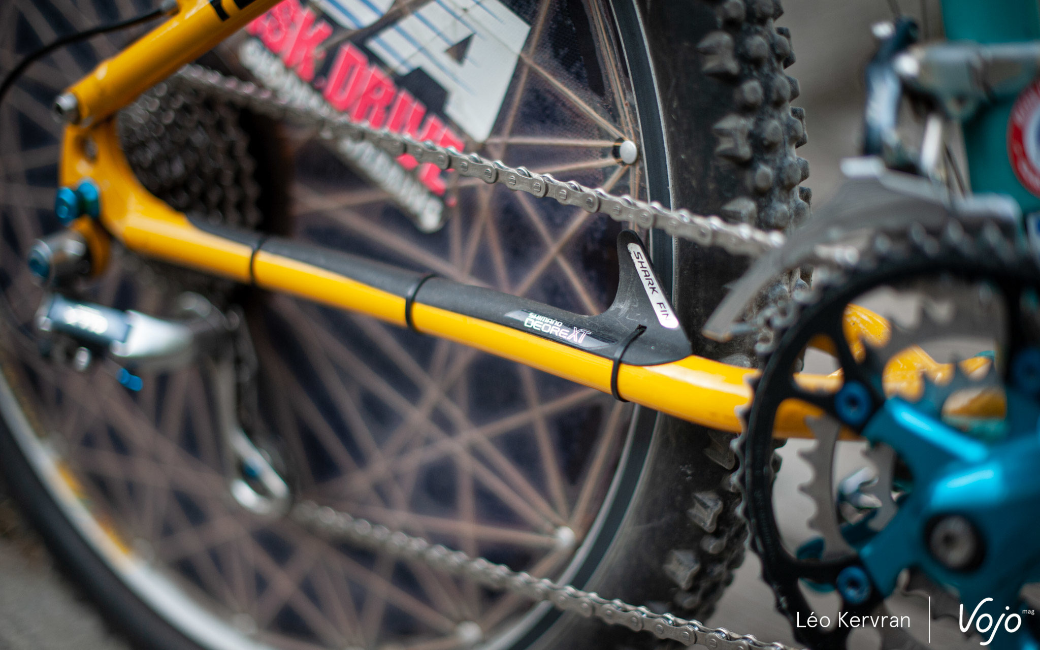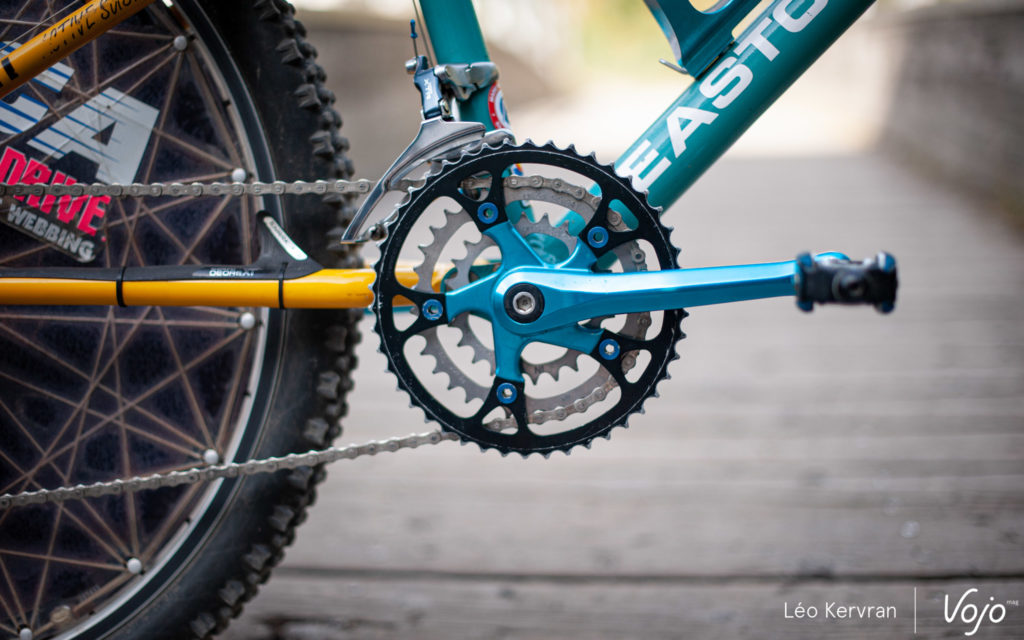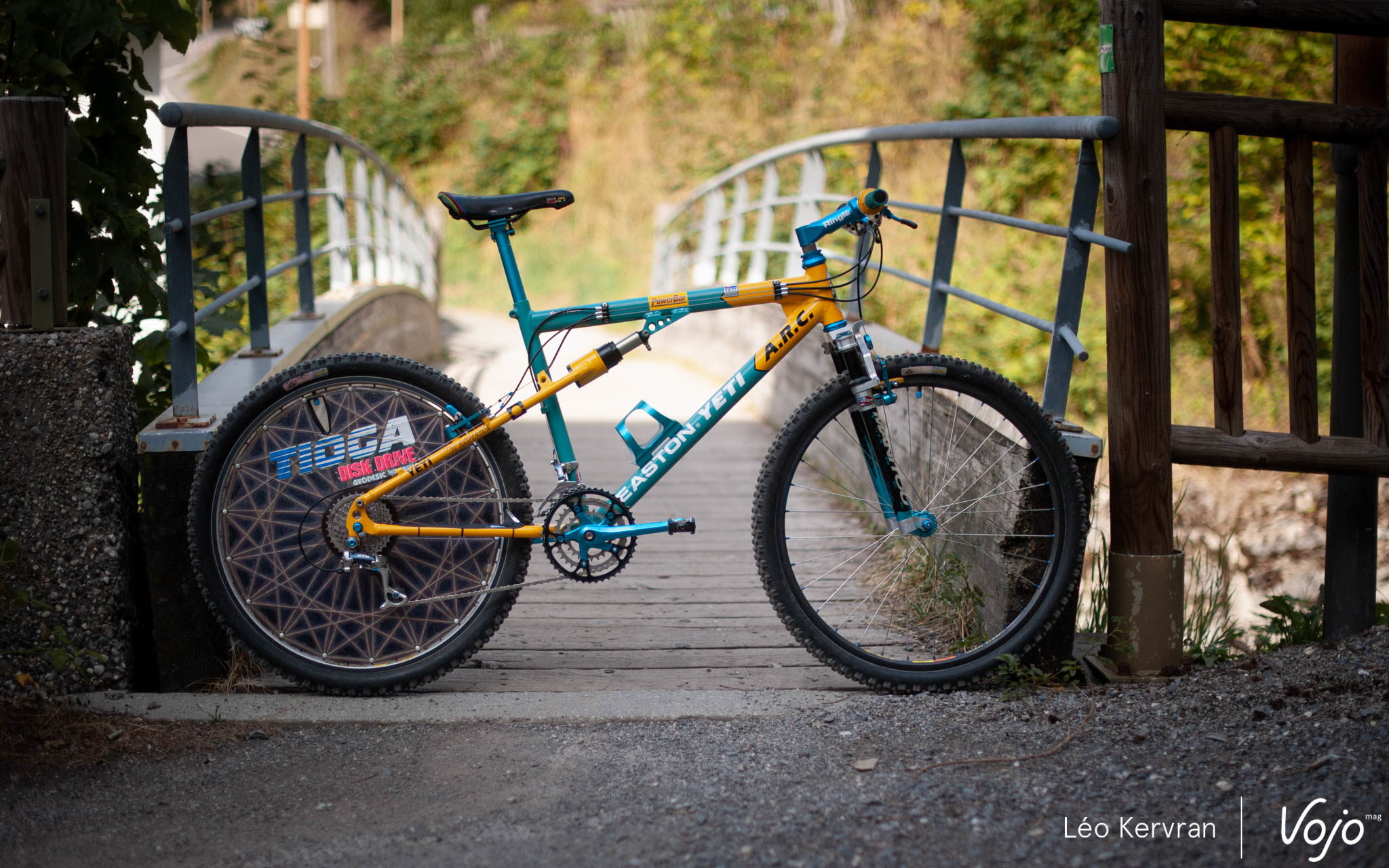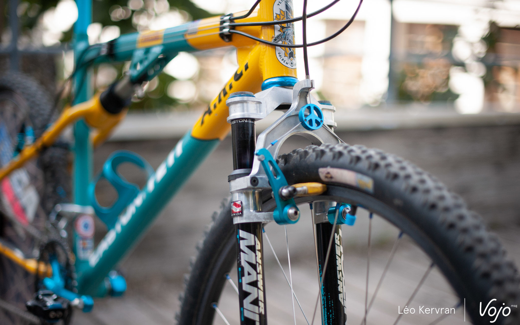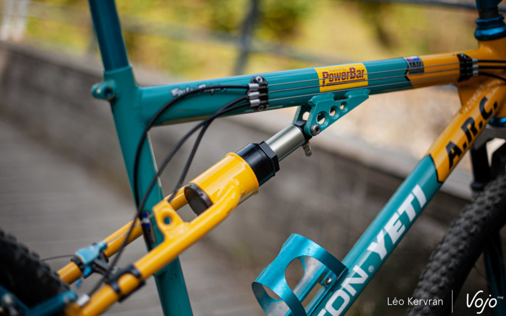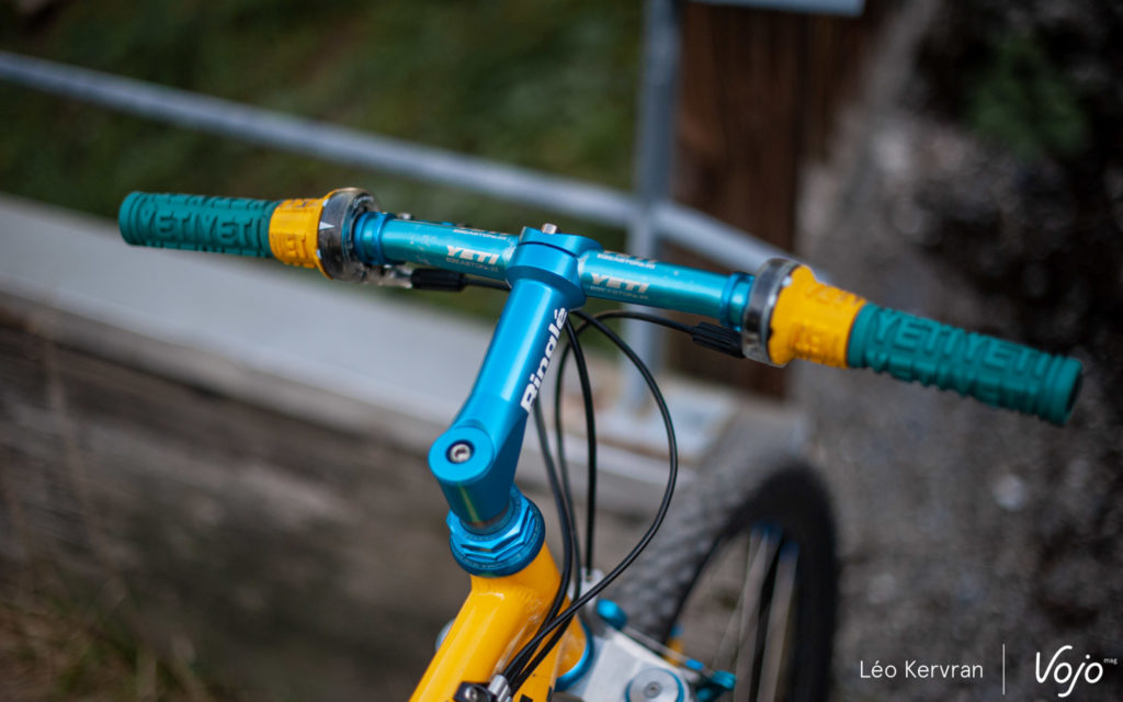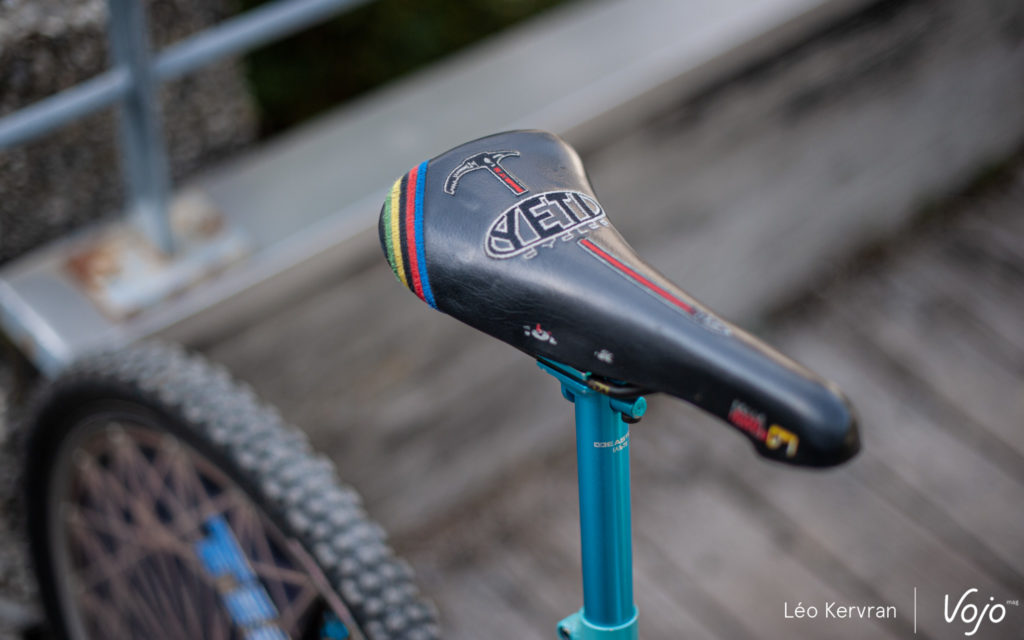 Le spectacle se passe aussi dans les allées aux Gets ! C’est tout à fait par hasard que nous avons ainsi croisé ce superbe Yeti AS-LT de 1994. C’est l’oeuvre de Sylvain Ruelle, mécanicien de l’équipe de France et membre de Génération Mountainbike.