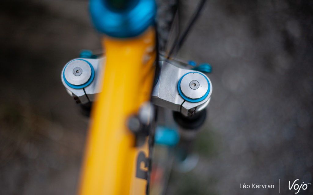 Il est à ce jour impossible d’avoir de plus amples informations, on ne connaît toujours pas le rôle précis des boutons présents sur le cintre. Permettent-ils à Loïc de passer d’un mode à un autre, activent-ils un blocage pour améliorer le pédalage sur les sections les plus plates ? Ont-ils un impact sur la compression et/ou la détente de la fourche et/ou de l’amortisseur ?