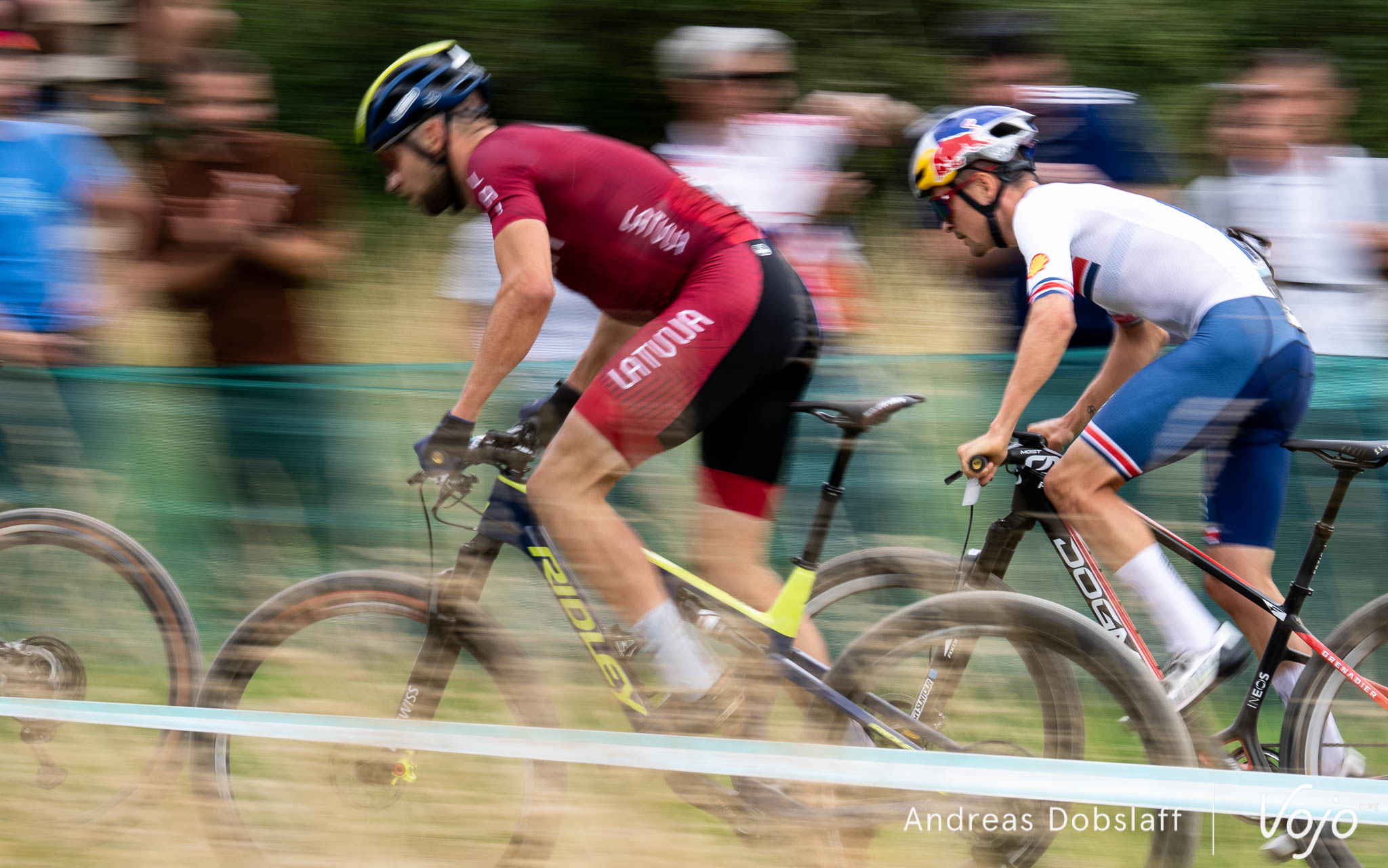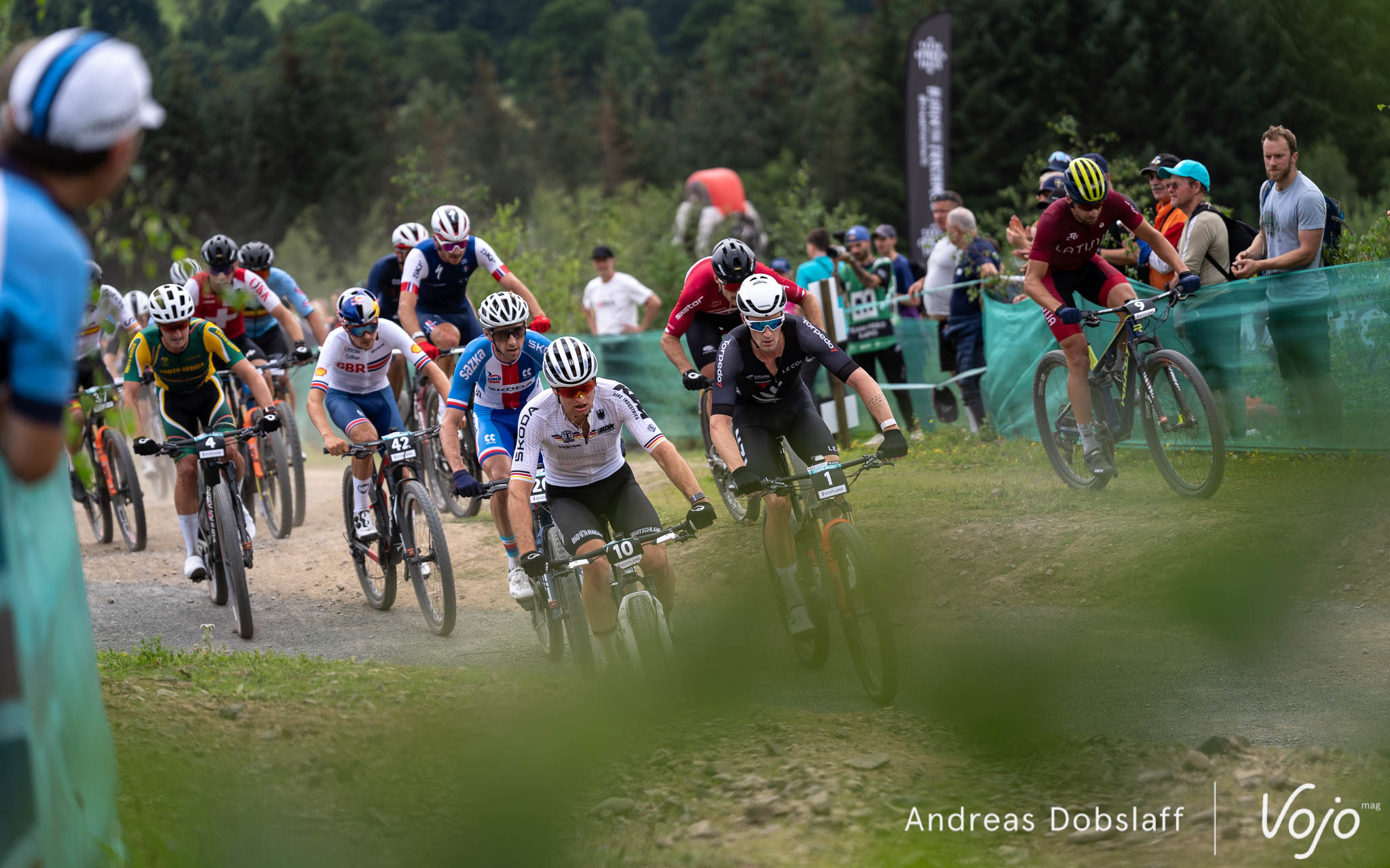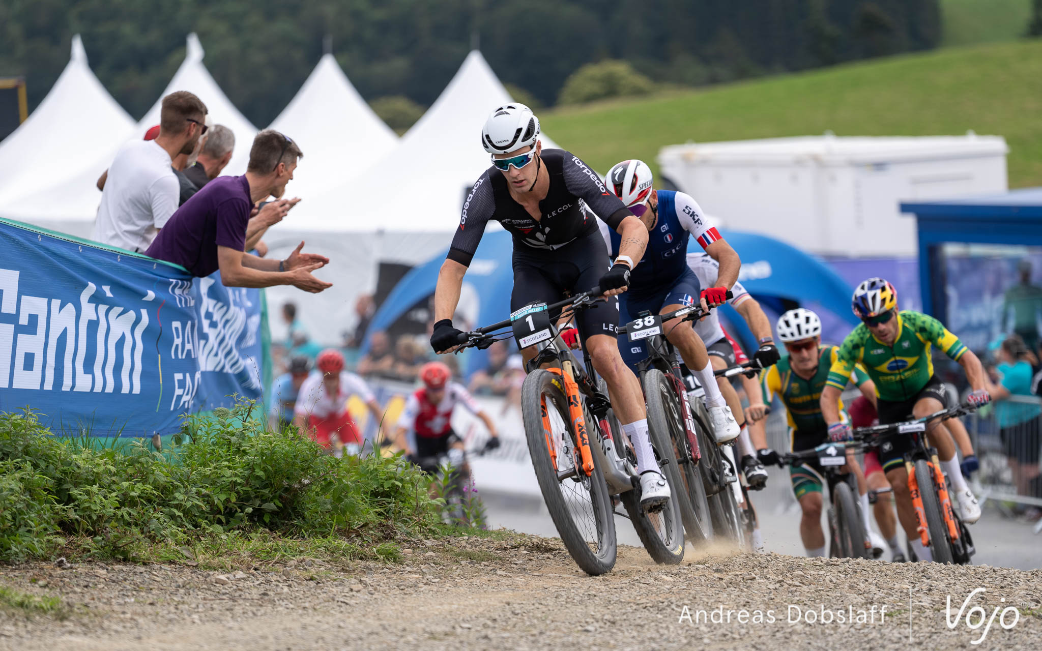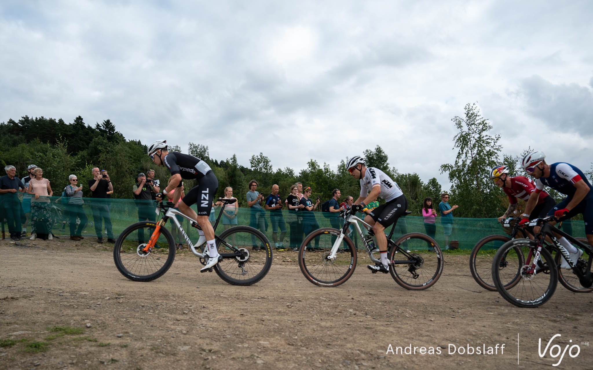 En revanche, il y a certaines choses qui ne changent pas, à commencer par le départ de Luca Schwarzbauer. Comme en coupe du monde, l’Allemand prend le meilleur départ et emmène le peloton vers le premier tour de circuit. Dans sa roue, des visages habituels comme ceux du champion du monde sortant Sam Gaze, d’Alan Hatherly ou d’Henrique Avancini mais aussi quelques « invités » qui tentent leur chance en ce début de course, à l’image de Martins Blums ou de Simon Andreassen.