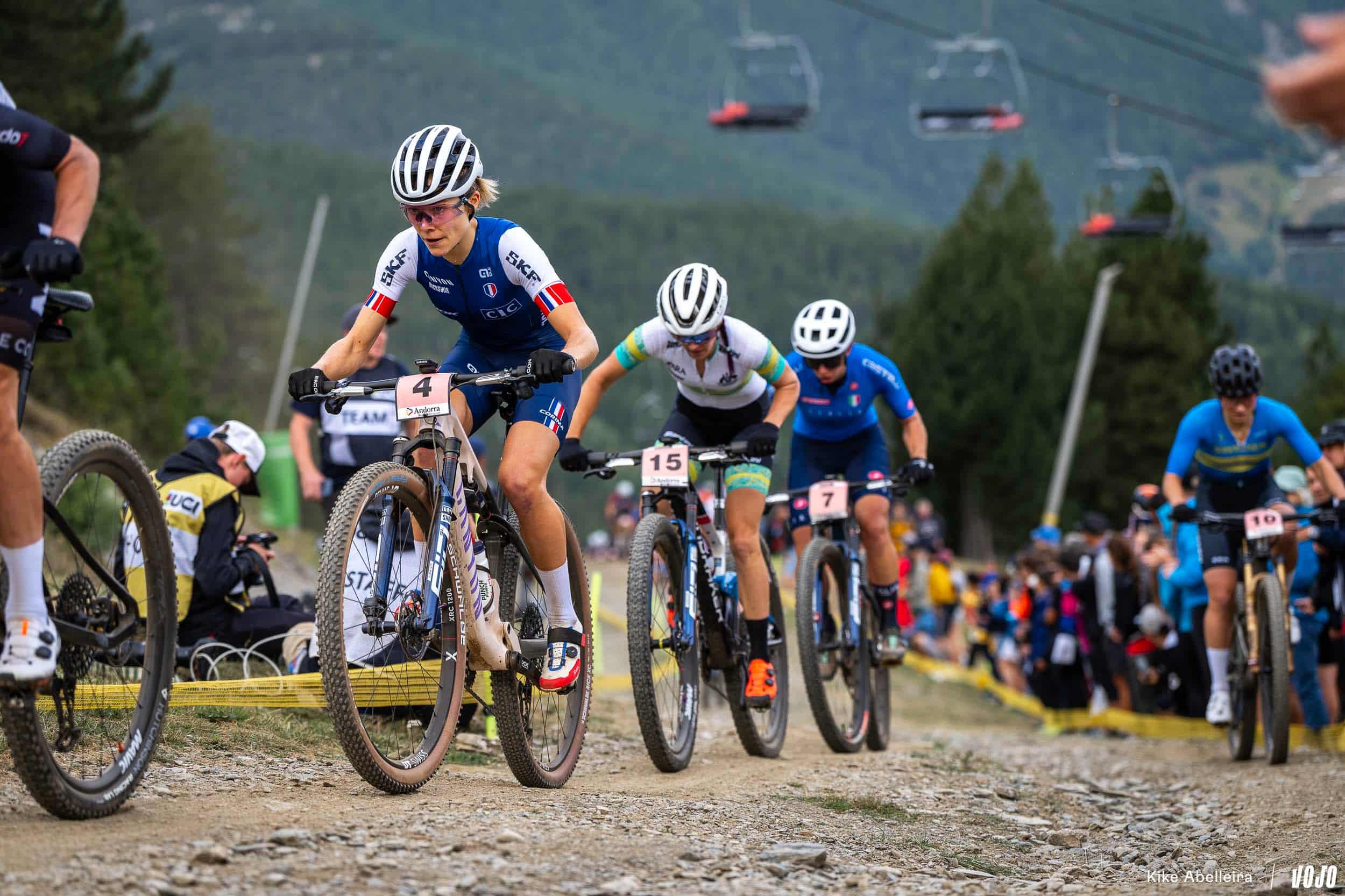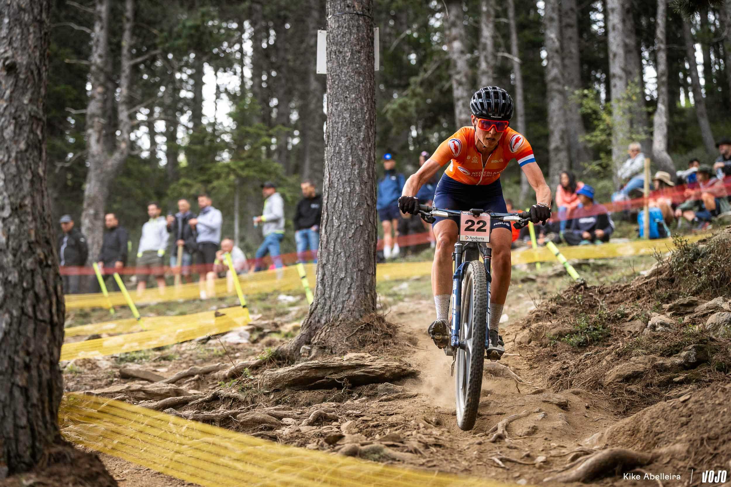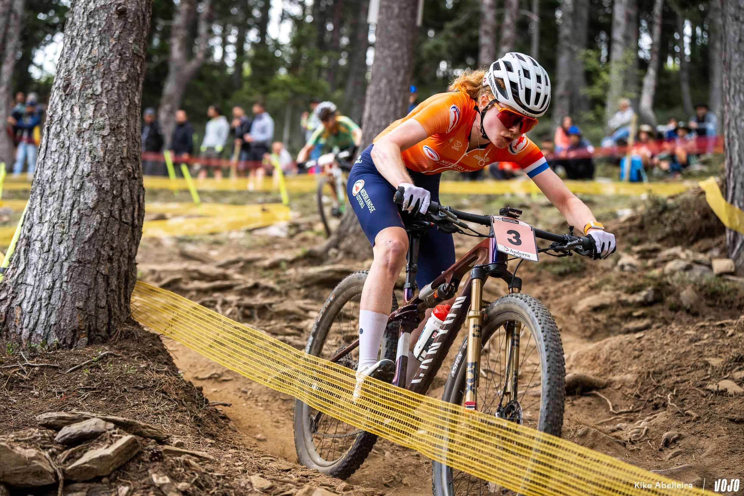 Candice Lill distancée, seul un problème mécanique ou une chute pouvait empêcher Puck Pieterse d’aller décrocher son premier titre mondial. La mécanique, elle a déjà donné aux JO et pour ce qui est d’éviter les chutes, on lui fait confiance : c’est l’une des meilleures pilotes du peloton en descente et si le joli parcours de Vallnord, très naturel, peut se montrer particulièrement traître quand il est mouillé, les concurrentes roulent pour l’instant sur du sec donc moins piégeux.