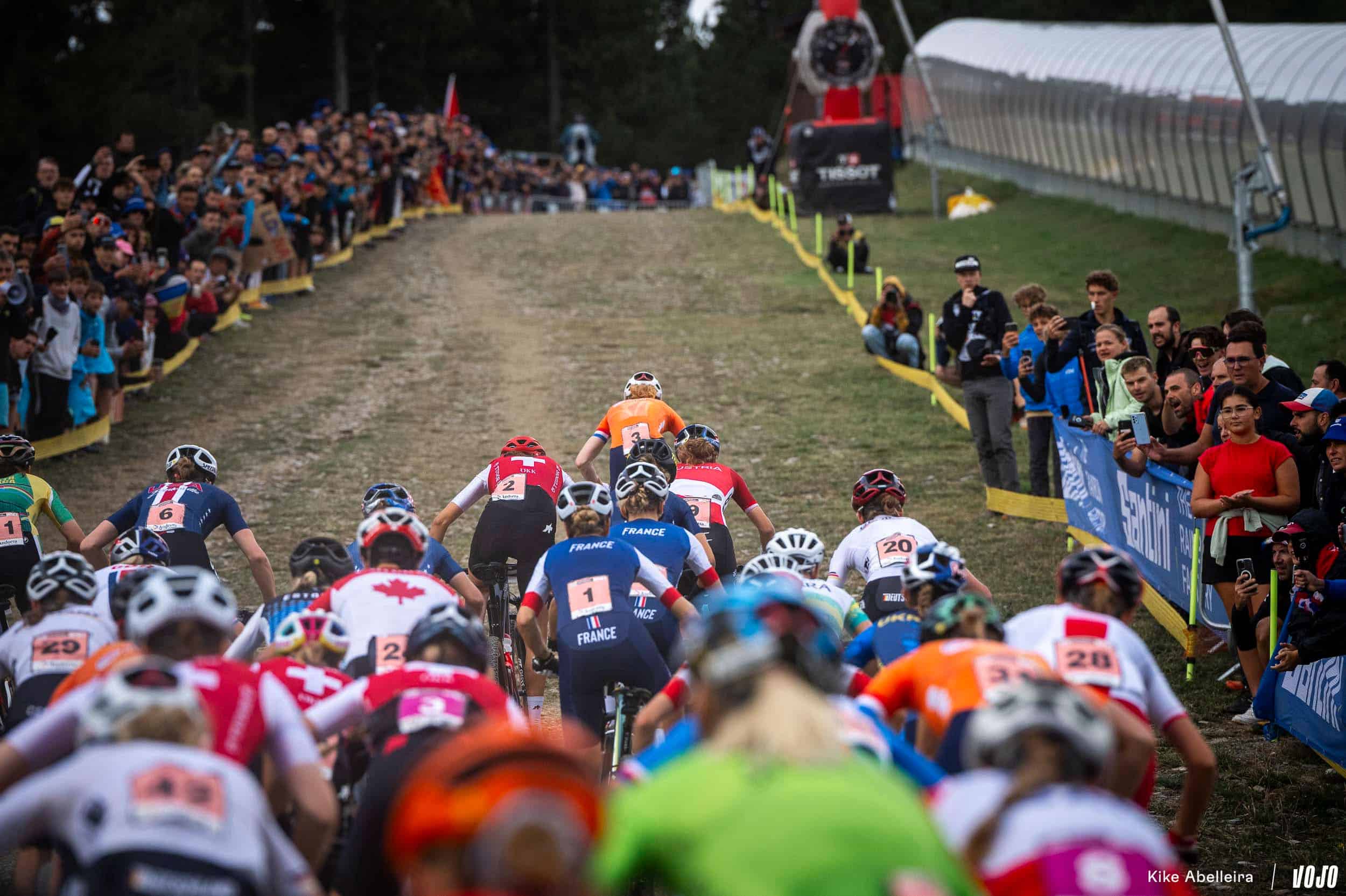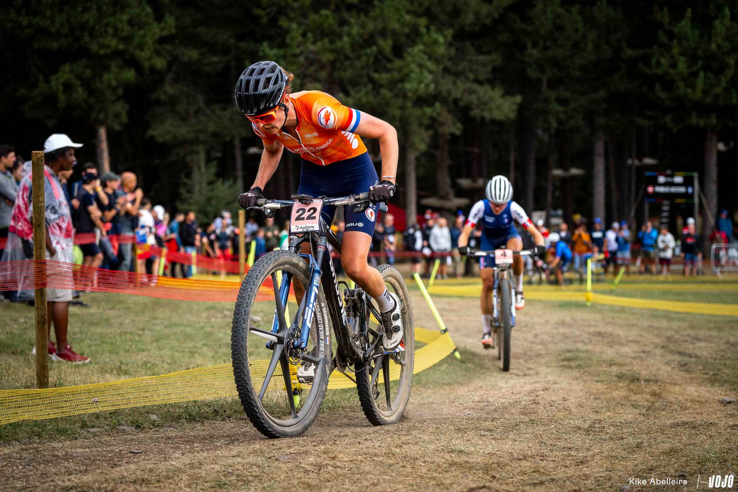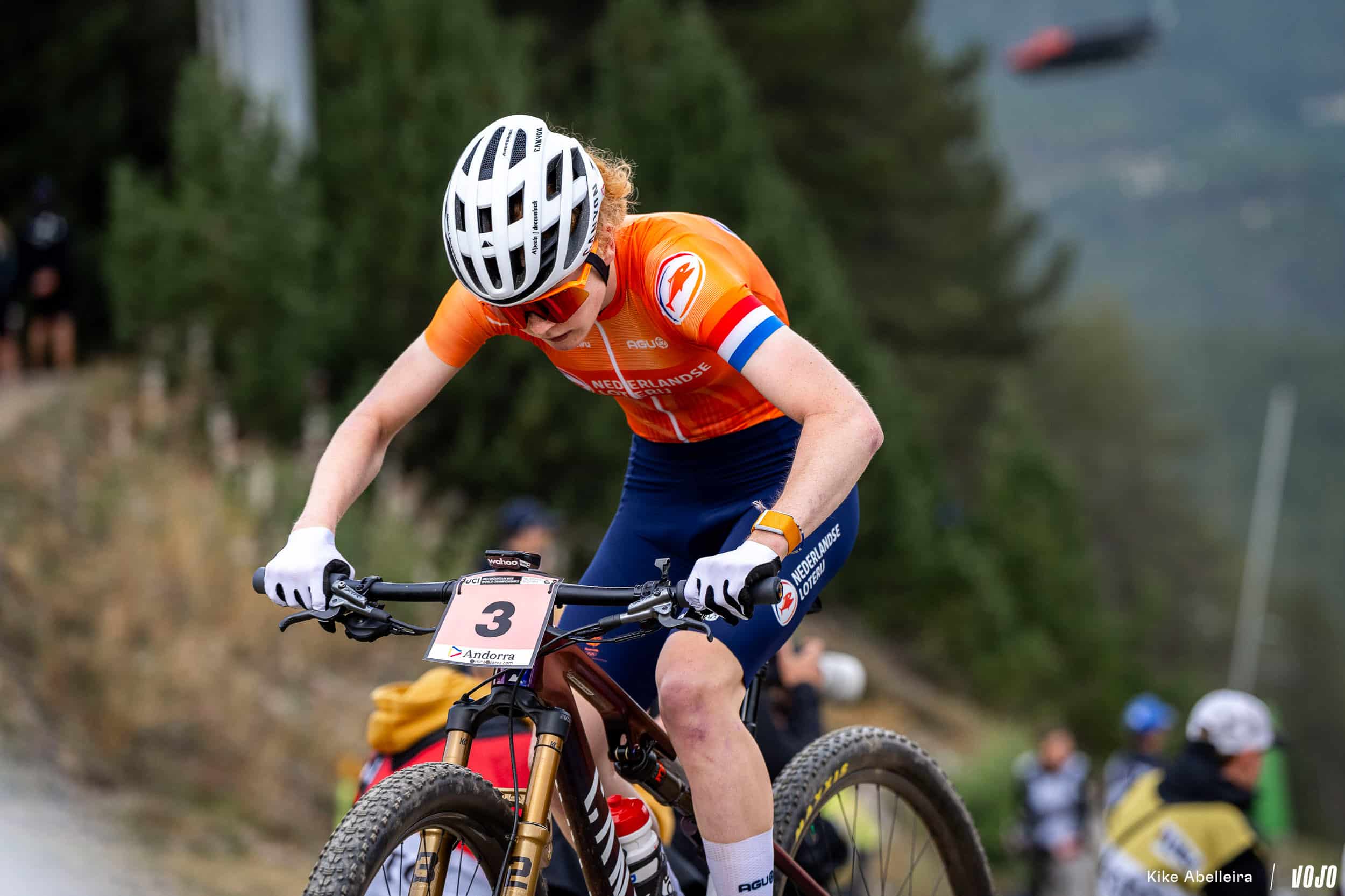 Candice Lill distancée, seul un problème mécanique ou une chute pouvait empêcher Puck Pieterse d’aller décrocher son premier titre mondial. La mécanique, elle a déjà donné aux JO et pour ce qui est d’éviter les chutes, on lui fait confiance : c’est l’une des meilleures pilotes du peloton en descente et si le joli parcours de Vallnord, très naturel, peut se montrer particulièrement traître quand il est mouillé, les concurrentes roulent pour l’instant sur du sec donc moins piégeux.