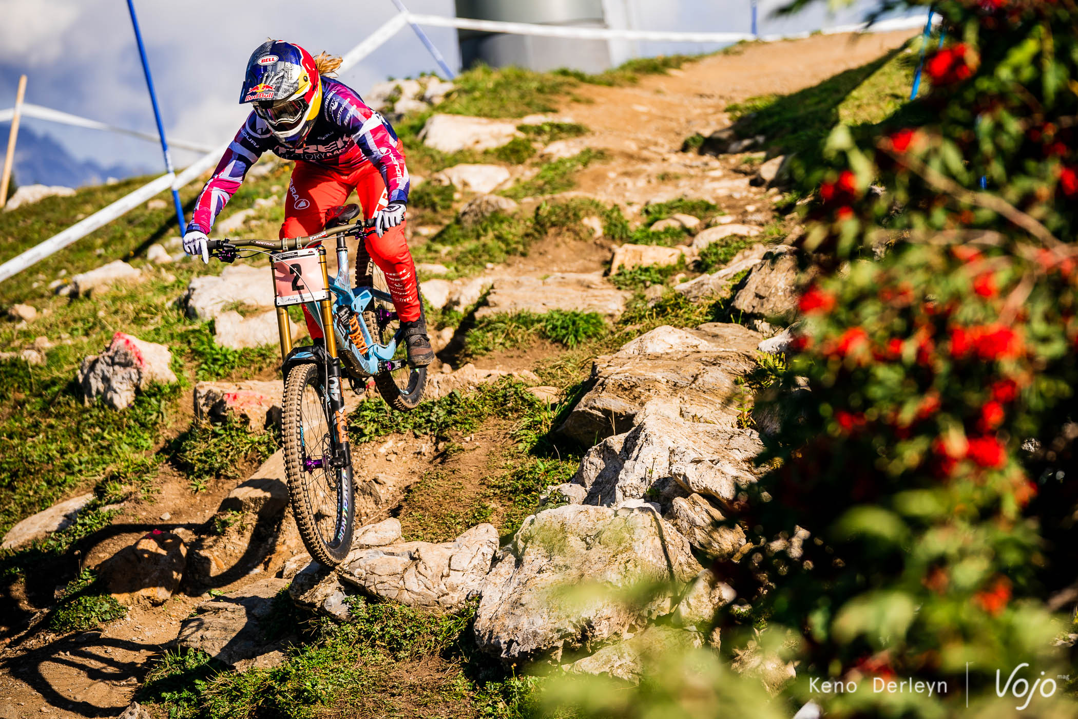 Chez ses rivales, Rachel Atherton semblait solide, comme à son habitude. Nous l’avons vue regarder très longtemps le rock-garden et procéder ensuite à un ‘track walk’ dans l’après-midi pour tout analyser.