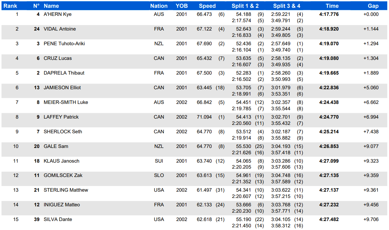Résultats complets : https://www.uci.org/mountain-bike/events/uci-mountain-bike-world-championships-presented-by-mercedes-benz