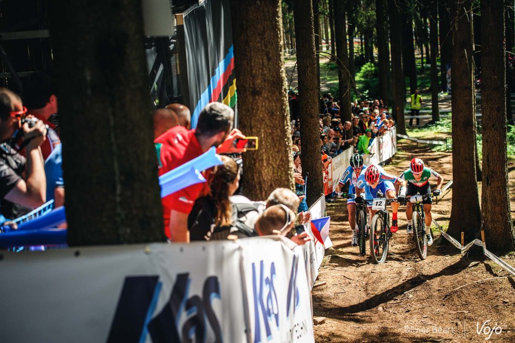 Ondrej Cink a aussi à coeur de briller sur ses terres, et il s’installe dans le premier groupe. Schurter va-til se retrouver pris en tenaille entre deux Tchèques et se faire piéger ?