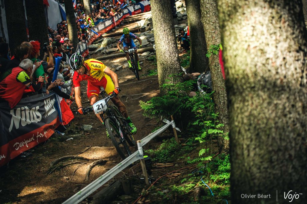 Survolté, il étire le peloton mais Nino Schurter reste attentif et ne se laisse pas piéger. « J’ai voulu faire une sélection d’entrée. Ici, il ne faut pas qu’il reste un gros groupe, sinon c’est la guerre à chaque fois pour savoir qui va arriver premier dans les zones techniques. Je voulais faire ma course et voir directement qui étaient les hommes les plus forts, explique Kulhavy. Malheureusement, je me suis vite rendu compte que je n’étais pas dans un grand jour. Sans le public, je ne sais même pas si je serais allé au bout. Je leur dois beaucoup, ils m’ont porté. »
