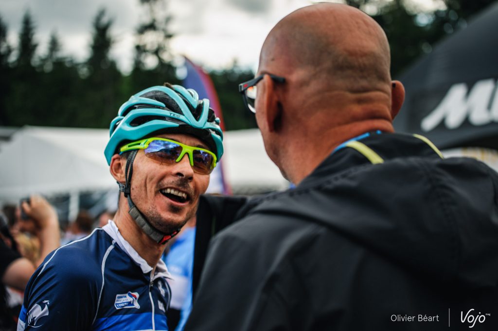Après la ligne, pendant que Julien Absalon prend la route du podium, on retrouve les Frenchies avec Jordan Sarrou chaleureusement félicité par José Hermida qui lui lance « c’est ça la rélève, il pousse fort le petit là » ; Maxime Marotte qui fait la grimace et qui a du mal à expliquer ses sensations du jour ; ainsi que Stéphane Tempier, hilare devant ses proches.