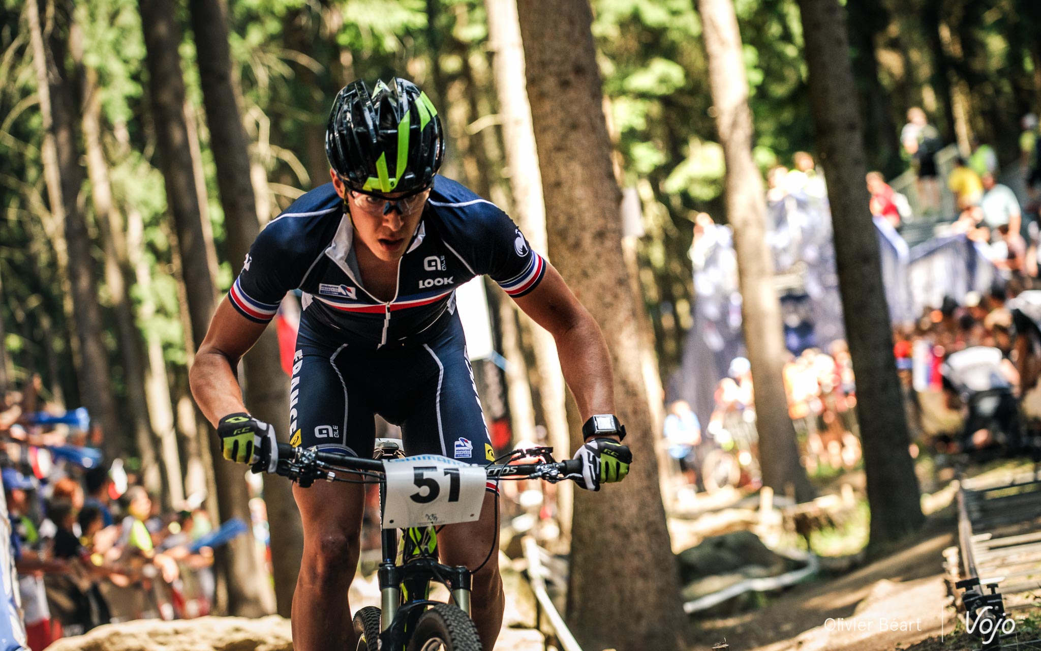 Par contre, pas de nouvelles de Victor Koretzky ! Le pilote du team BH, qui roulait sur le prototype en carbone du nouveau BH Lynx Race, s’est laissé enfermer au départ. Il nous explique : « Les courses Espoir sont plus nerveuses qu’en Elite. Au départ, j’ai manqué de la petite étincelle pour me positionner devant directement. J’ai dû faire pas mal d’efforts pour rentrer. »