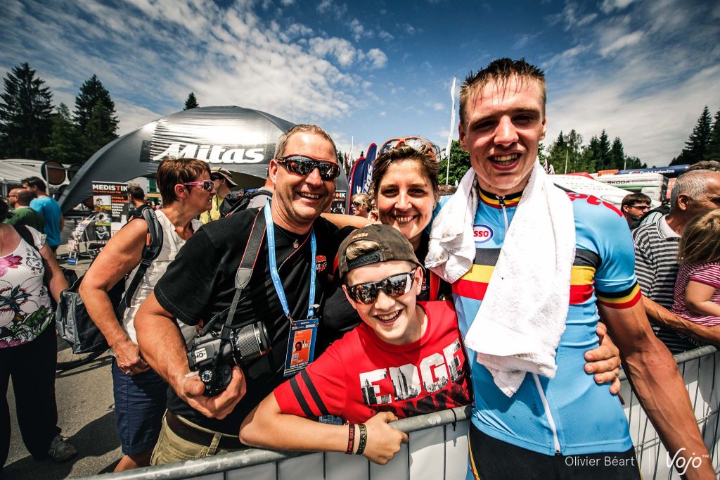 A l’arrivée, il a pu célébrer ce résultats avec sa famille et le coach des jeunes, Filip Meirhaghe, sous le regard de la Junior Emeline Detilleux, venue féliciter son coéquipier.