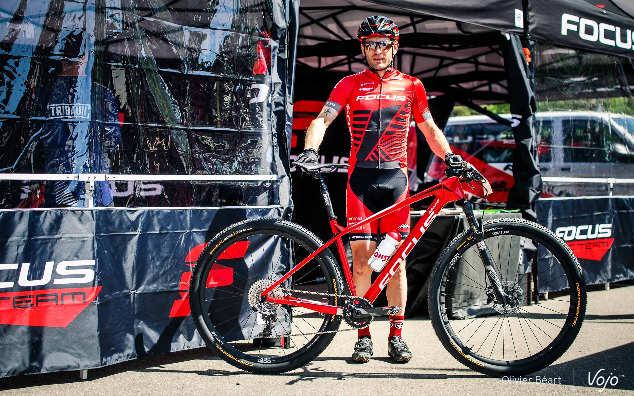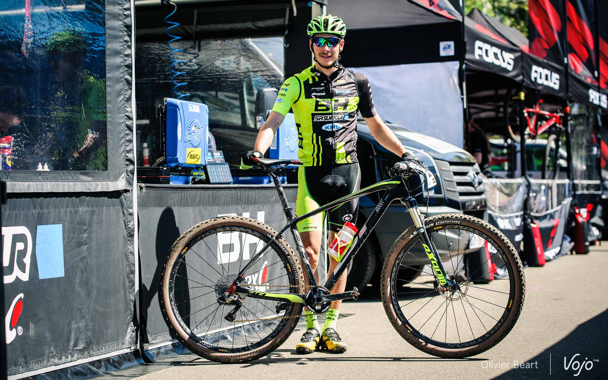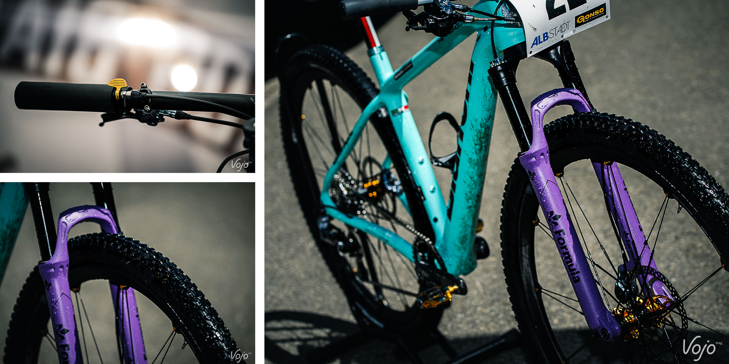 Florian Vogel roule sur un Focus Raven Max équipé en Sram XX1 (bientôt remplacé par du XX1 Eagle), roues DT XRC1200 Carbon et avec la nouvelle RockShox SID World Cup. La principale nouveauté, c’est qu’il fait désormais partie des quelques pilotes qui ont décidé d’équiper leur vélo d’une tige de selle télescopique. Une option qui devrait rapidement se généraliser dans le peloton et on devrait aussi voir apparaître plusieurs modèles dédiés au XC.
