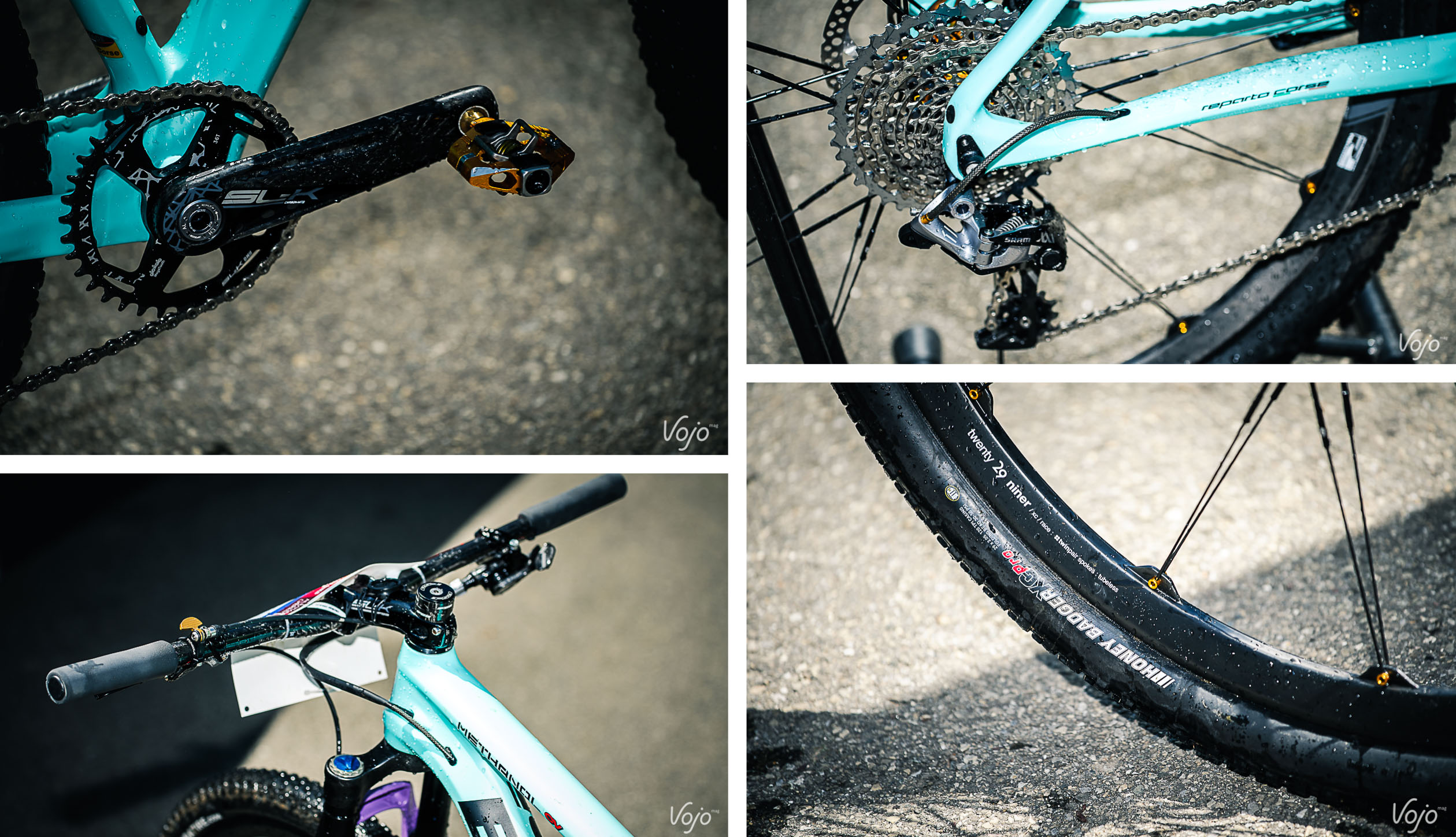 Chez BH, c’est avec Victor Koretzky que nous avons discuté matos, autour de son Ultimate carbone. Il est équipé en XTR Di2 et composants FSA, dont le nouveau pédalier K-Force Light qui permet de gagner près de 200g par rapport à la précédente génération. Un point important car nous avons découvert que le jeune coureur français est un vrai weight-weenie !