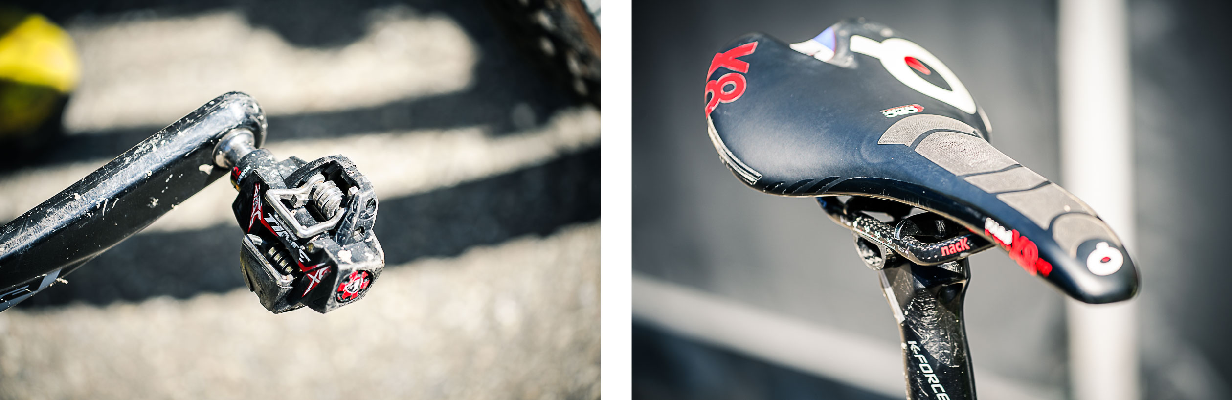 Autre détail « extrémiste » : Victor Koretzky demande à ses mécanos de retirer les caches des roulements de ses pédales Time. La durabilité est affectée et il faut les entretenir plus souvent, mais le gain en fluidité est particulièrement net. Le chariot de sa selle est aussi modifié avec des crochets plus légers qu’à l’origine et un berceau en carbone pour les rails, ce qui permet de gagner une petite vingtaine de grammes.