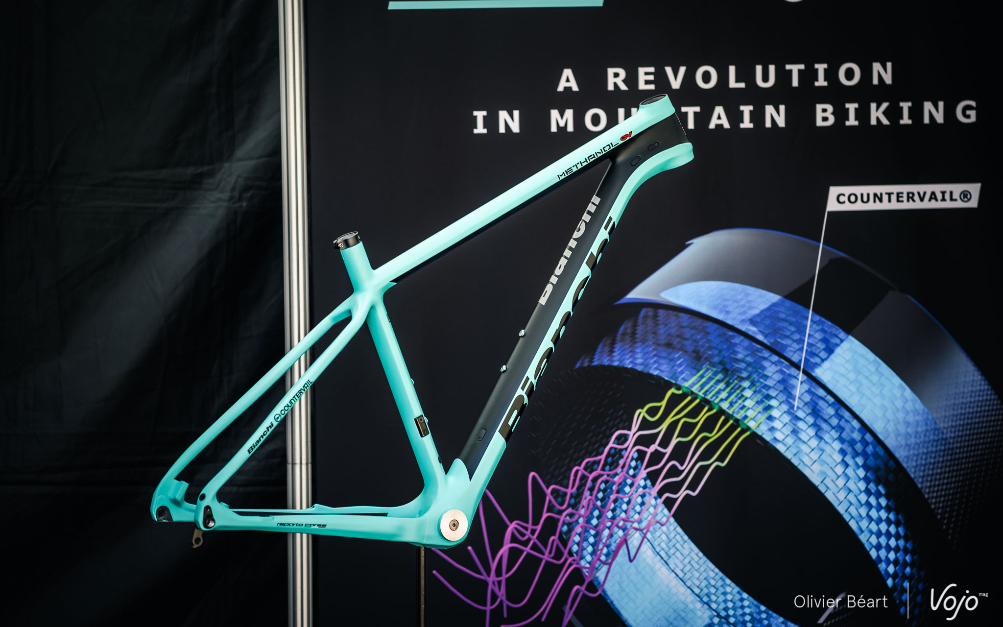 La technologie, baptisée Countervail, provient de l’aéronautique et consiste en une disposition particulière des fibres de carbone, couplée à une résine spéciale et à l’insertion d’un matériau visco-élastique ; le tout permettant d’atténuer très fortement les vibrations transmises au pilote par le cadre. Ce type de carbone est propre à Bianchi et la marque l’utilise déjà sur plusieurs de ses vélos de route, mais c’est une première sur un des ses VTT. Il est présent sur tout le cadre et pas juste à des emplacements spécifiques.