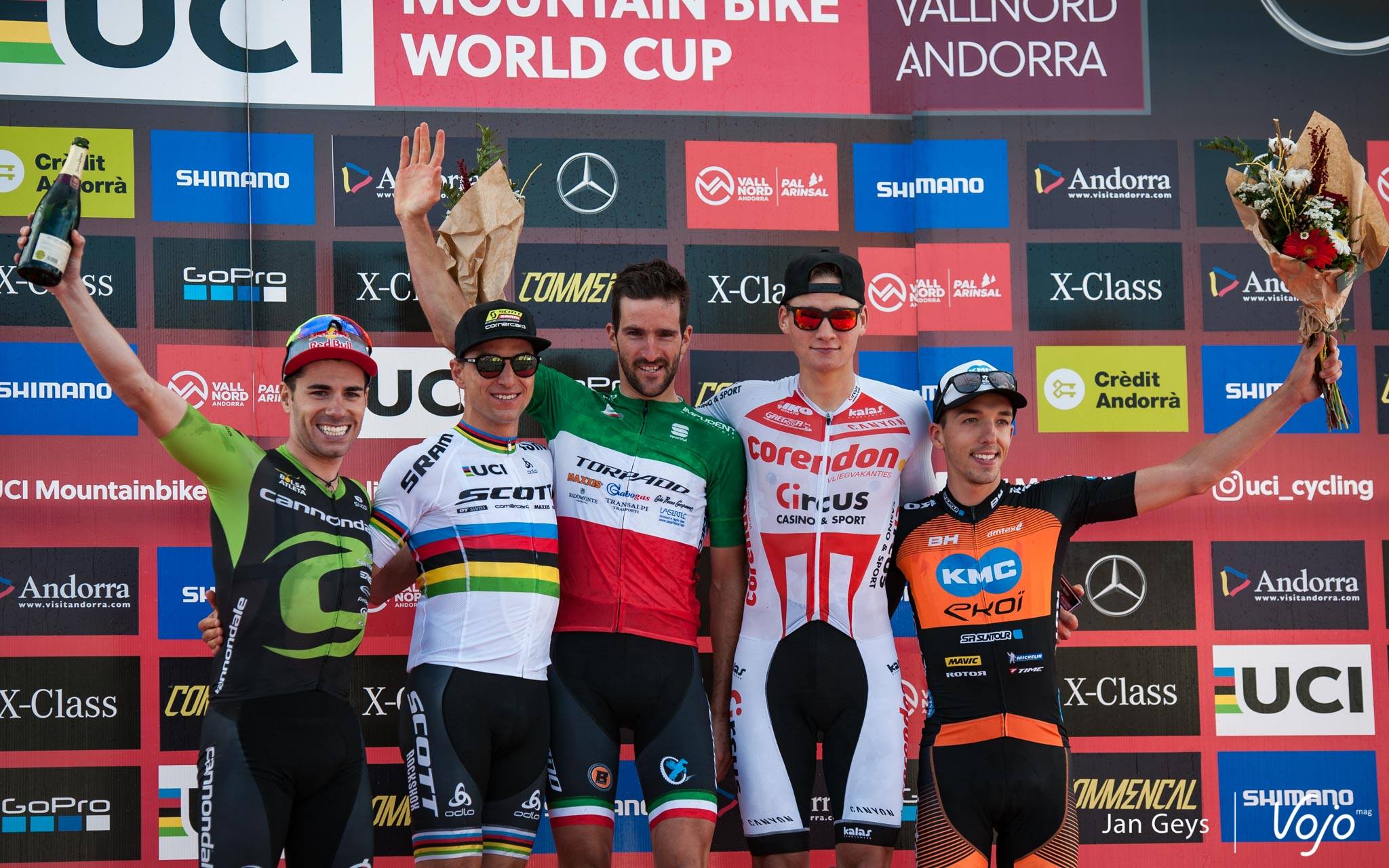 Matthieu Van Der Poel a maintenu sa troisième place tout au long de la course. Cet autre podium lui permet de conserver sa deuxième place au classement général. Une belle bagarre s’est également jouée entre Henrique Avancini et Jordan Sarrou. Après avoir remporté le Short Track de vendredi dernier, le pilote Cannondale prouve une fois de plus qu’il est en forme, il signe un deuxième podium d’affilée et prend finalement la quatrième place du jour.