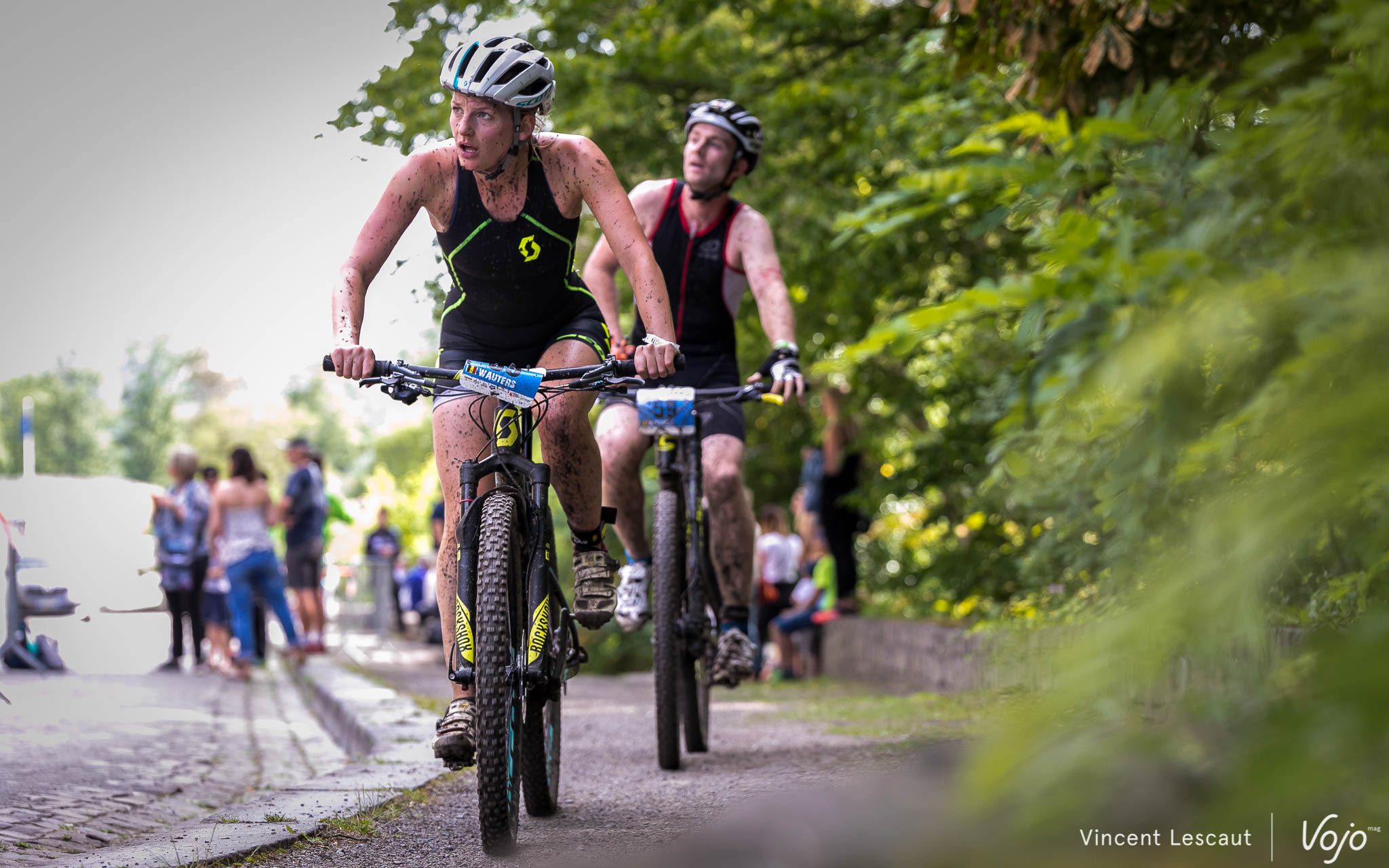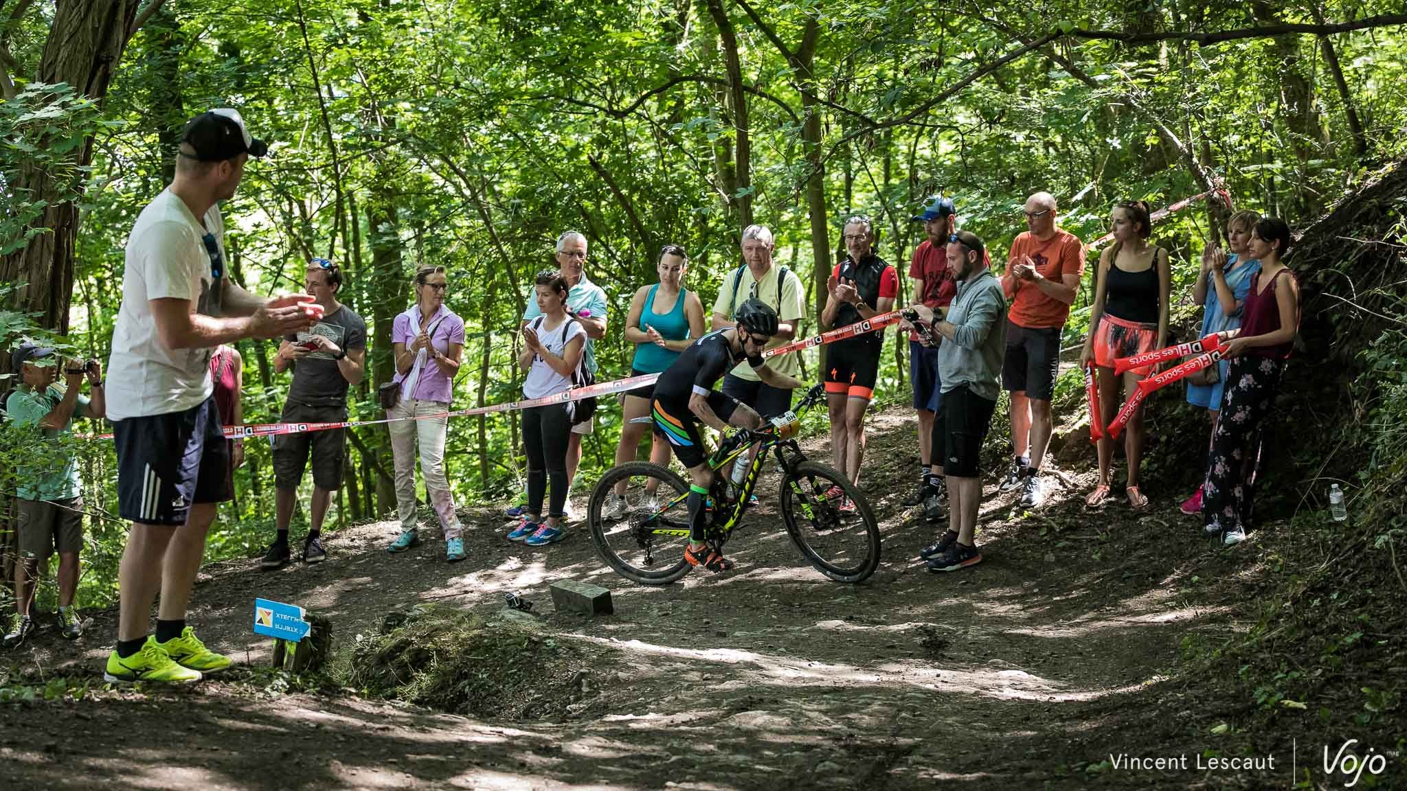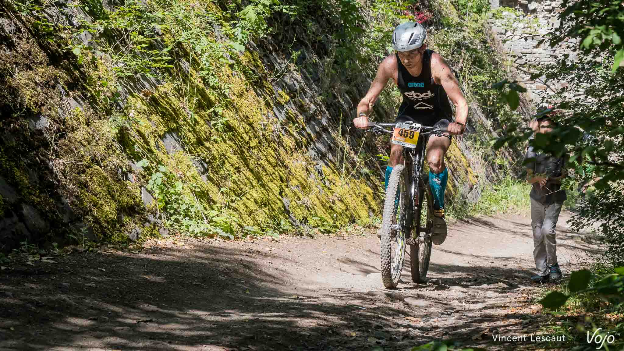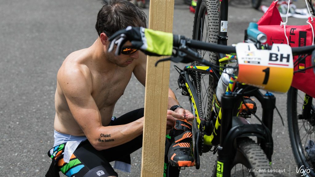 Très en forme, le Belge va réussir à devancer légèrement son adversaire sur le VTT… mais il va bien vite devoir céder sa 2e place !