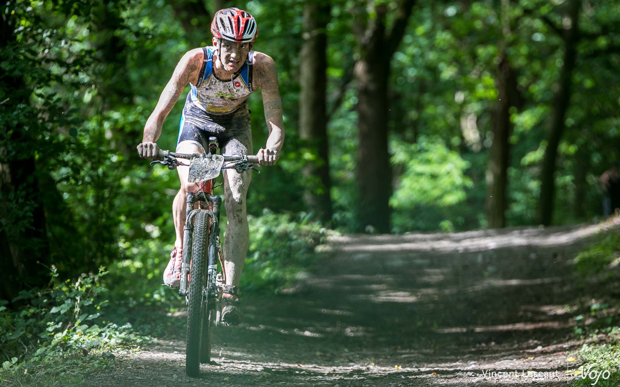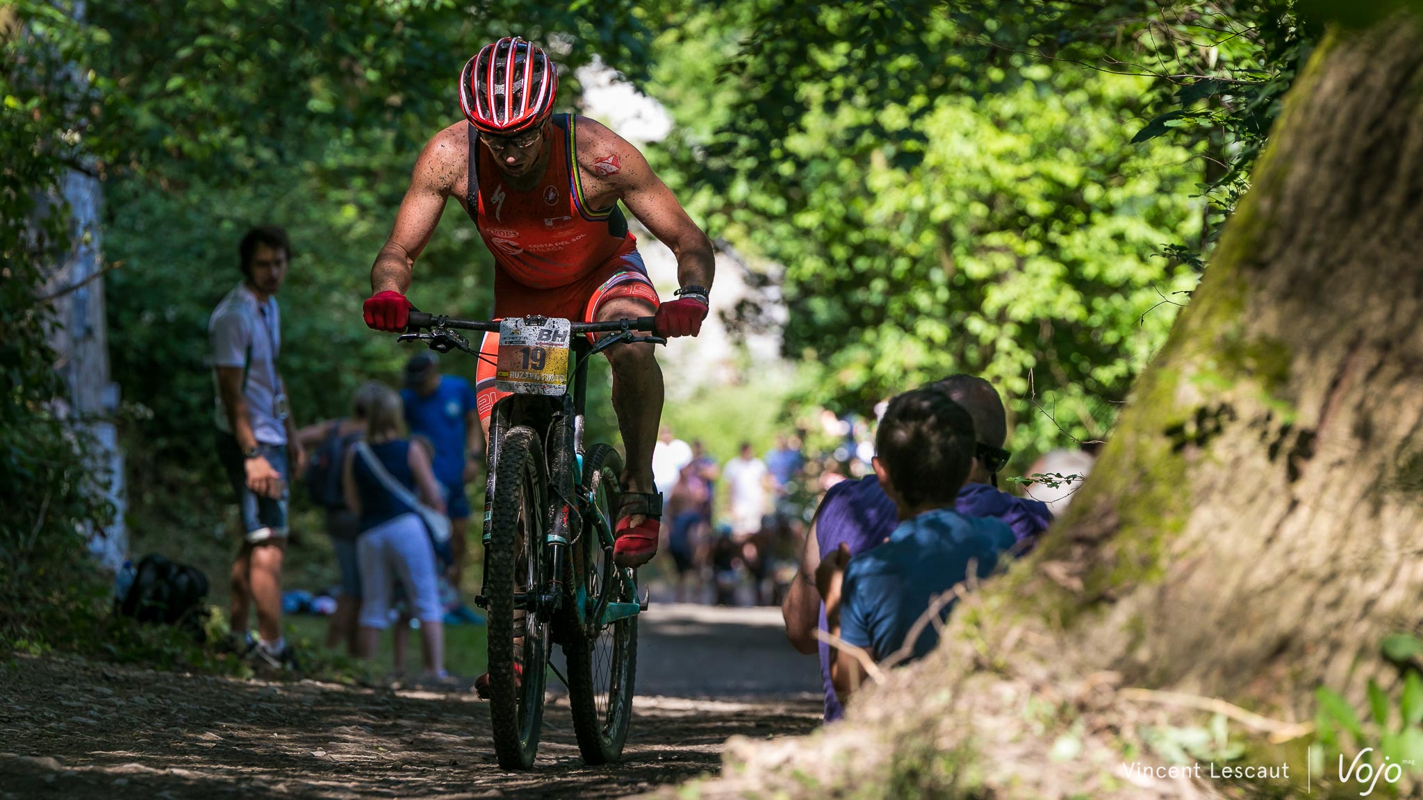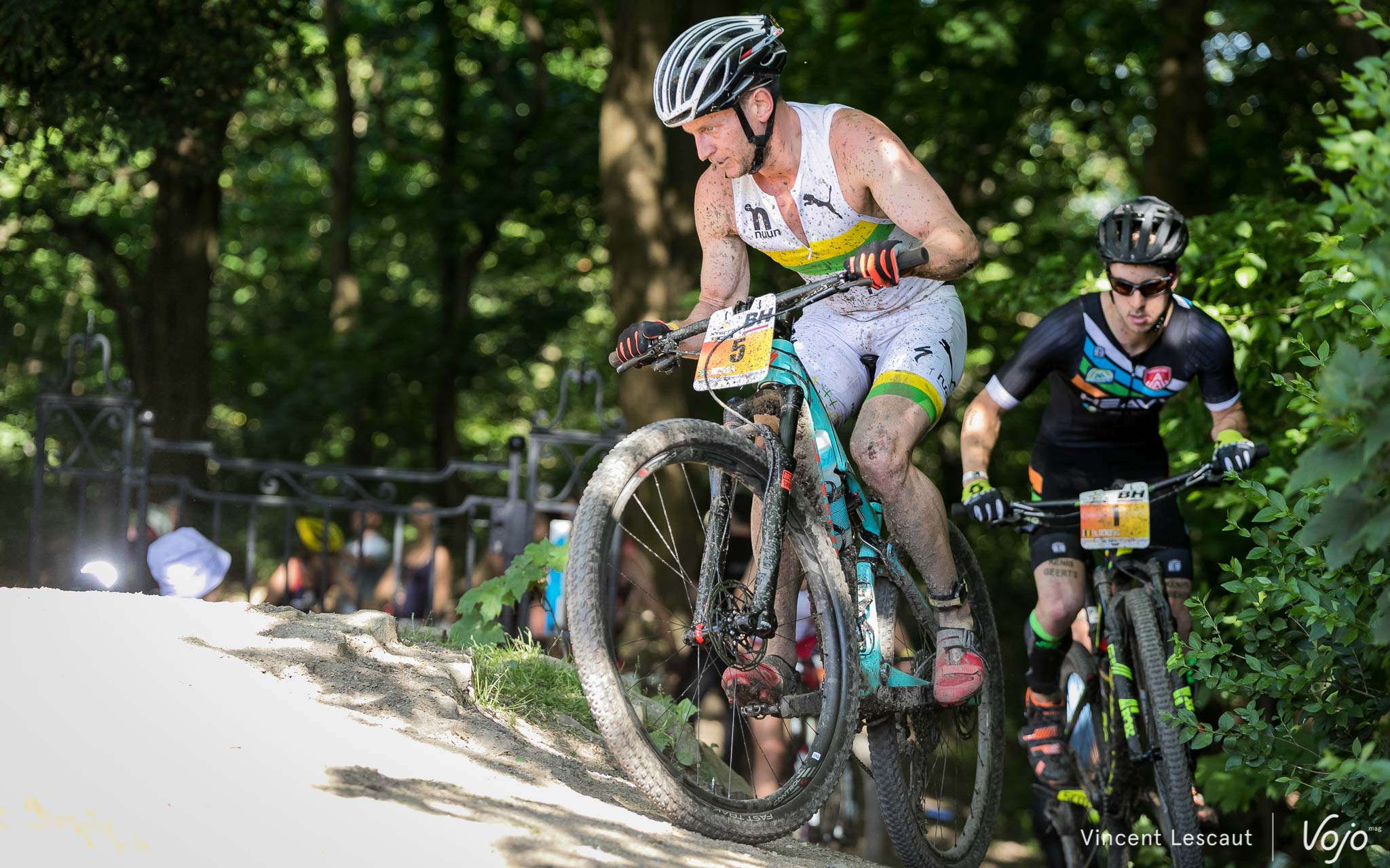 Très en forme, le Belge va réussir à devancer légèrement son adversaire sur le VTT… mais il va bien vite devoir céder sa 2e place !