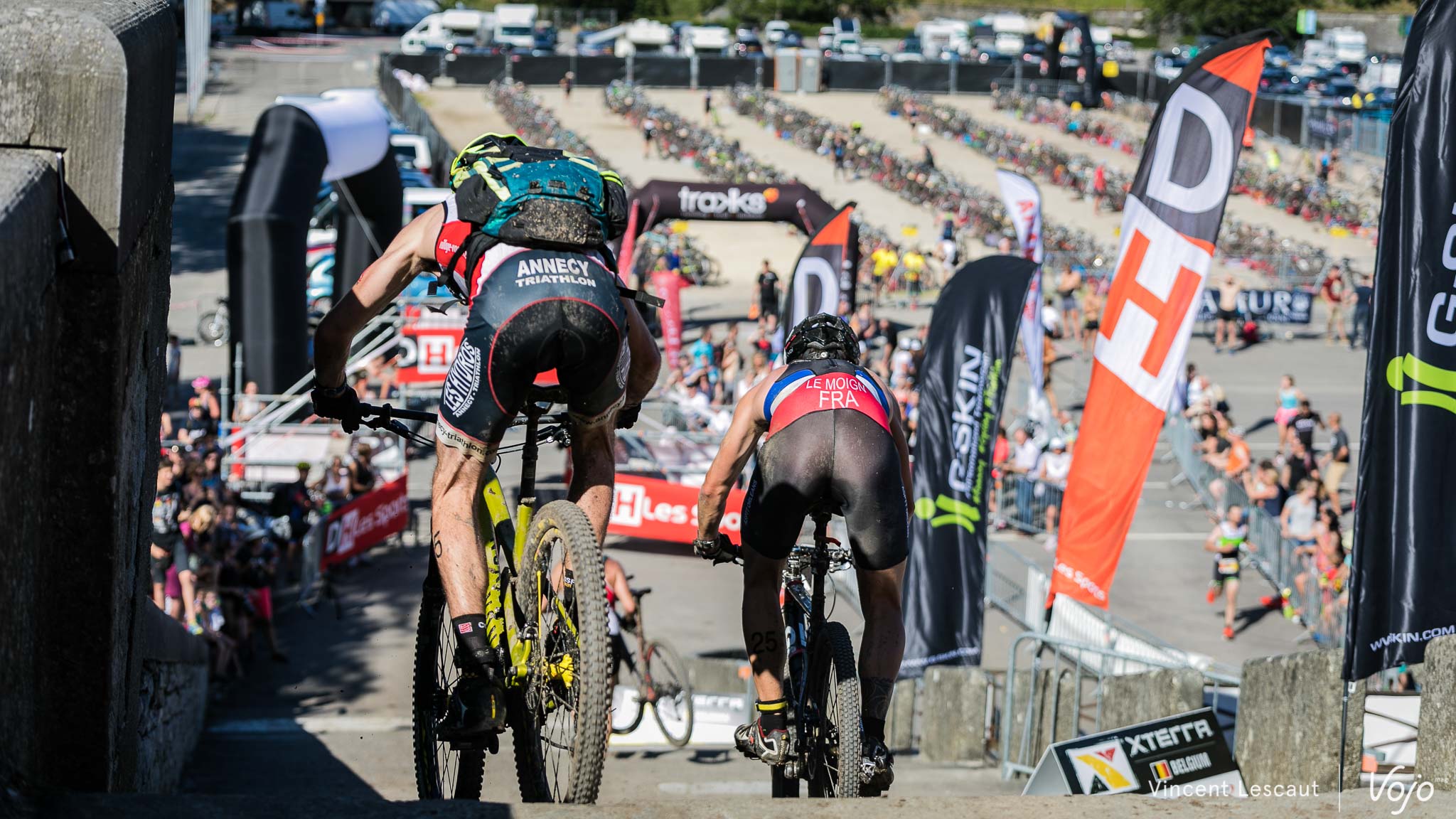 Le VTT touche à sa fin, il est temps de rejoindre le gigantesque parc fermé sur l’esplanade de la citadelle avant d’entamer la course à pied.