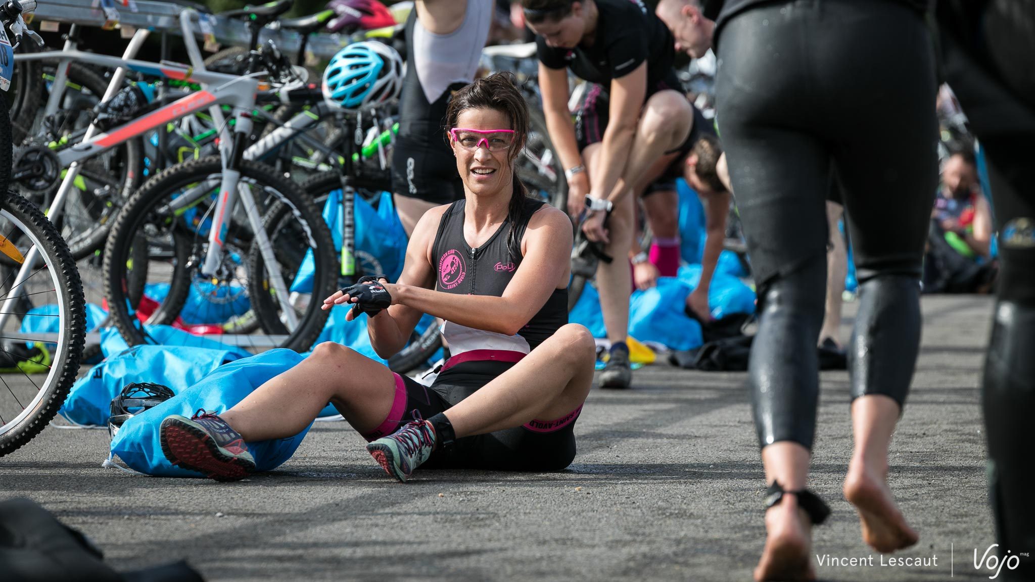 Devant par contre, ça va déjà très vite et le jeune Robbe Janssens, 20 ans, l’emporte au général en 1h39… avec quelques traces sur son visage, séquelles d’une petite glissade impromptue en VTT. Il devance le Français Corentin Carlier et le local Cyprien Dion, membre du club dont sont issus les organisateurs, le Tri4Us. Chez les Dames, le bouquet revient à Birgit Wauters, concentrée sur le vélo et tout sourire à l’arrivée.