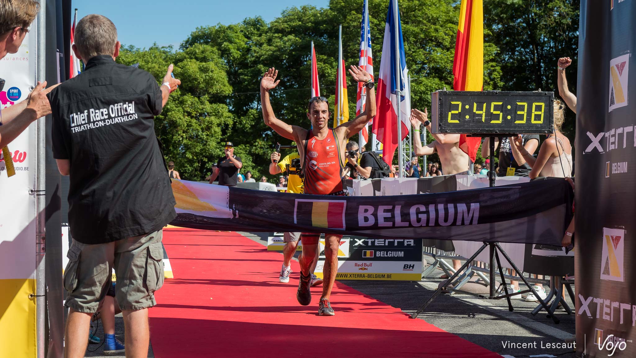 On s’offre une petite pause et on passe aux choses très sérieuses l’après-midi avec le Xterra Belgium version longue et son plateau très relevé où on compte plus de 10 nationalités présentes et des athlètes qui viennent parfois de très loin (Afrique du Sud,…) ainsi que quelques-uns des cadors de la discipline dont le multiple champion du Monde de la spécialité Ruben Ruzafa.